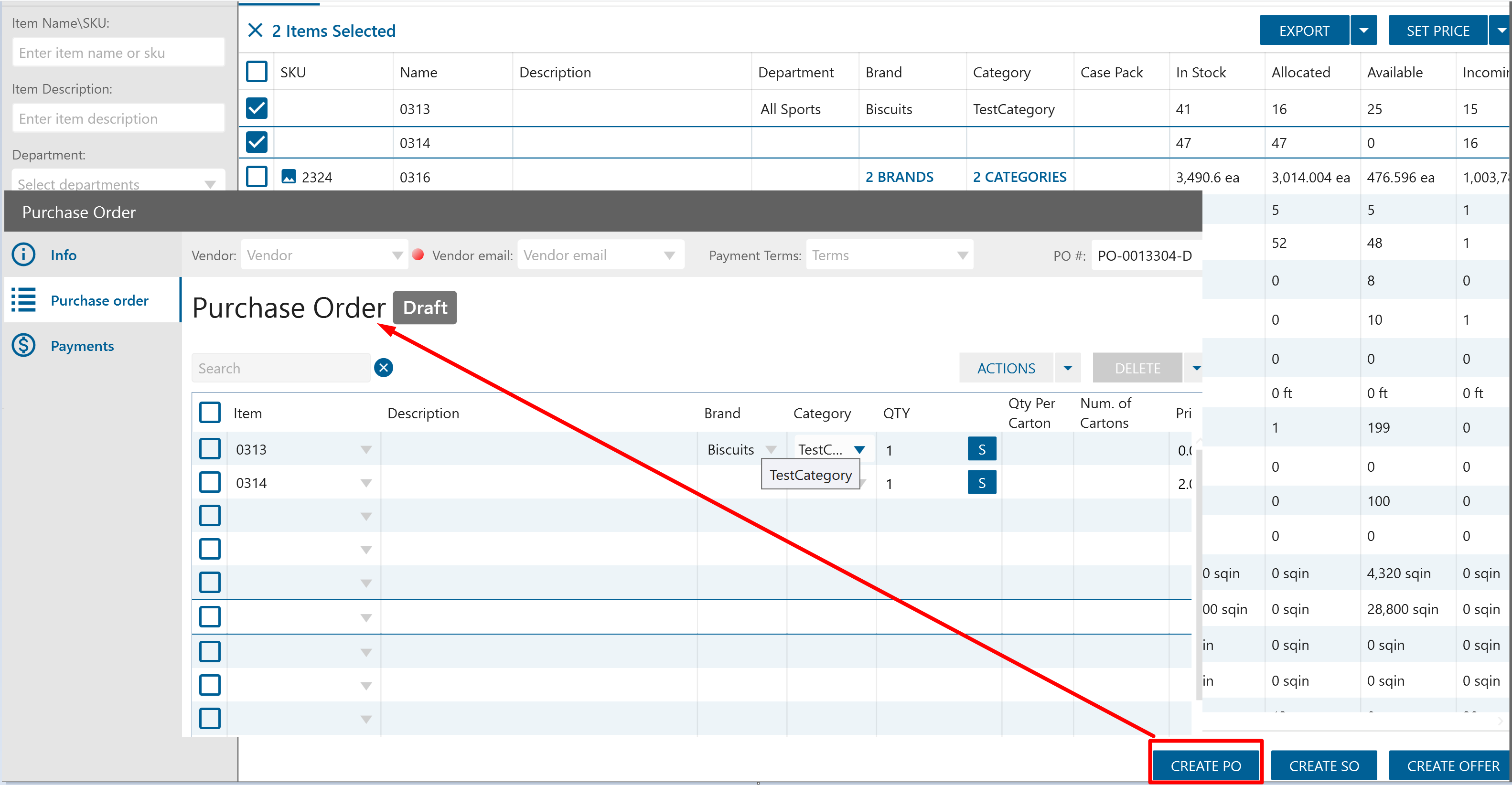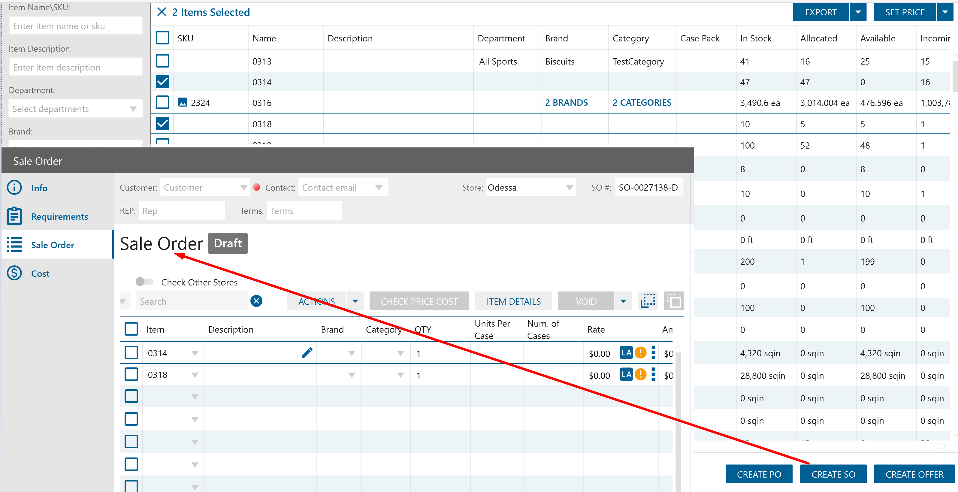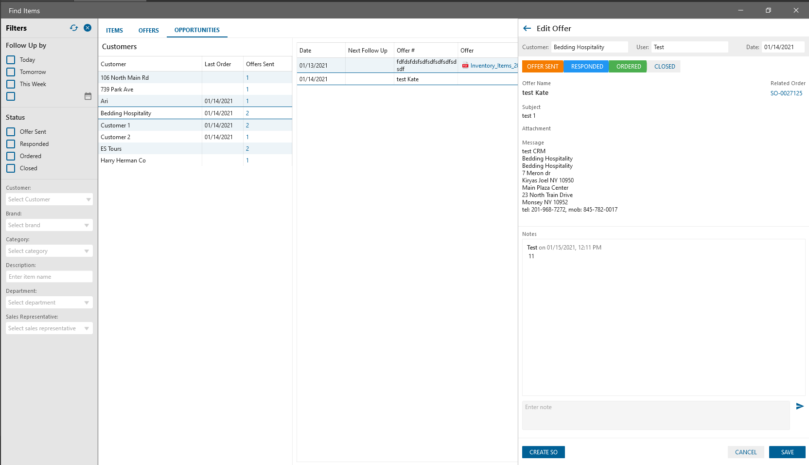 - Create SO button. After clicking on the button, the SO edit form should be opened with prefilled Customer and Items from the offer