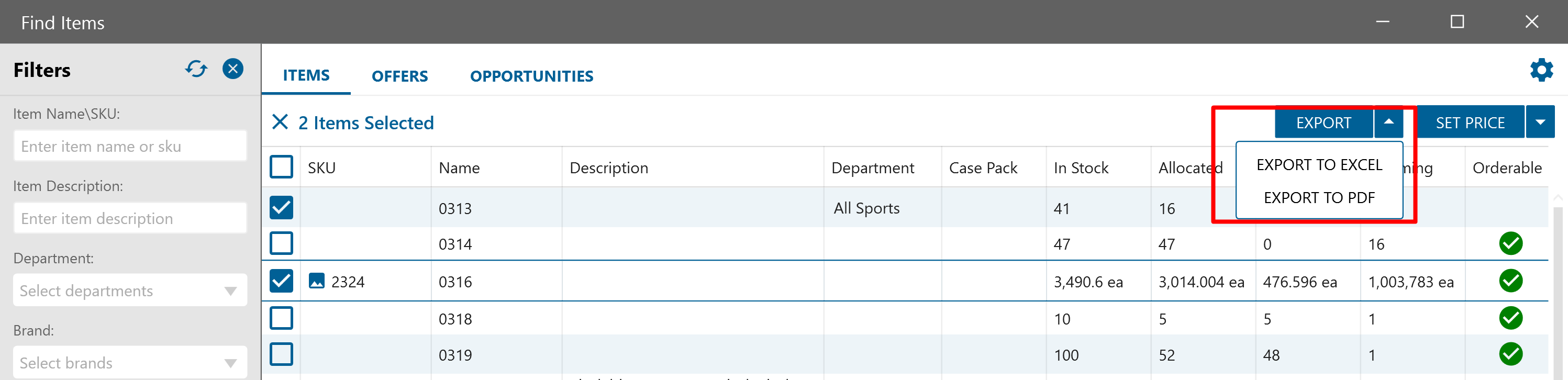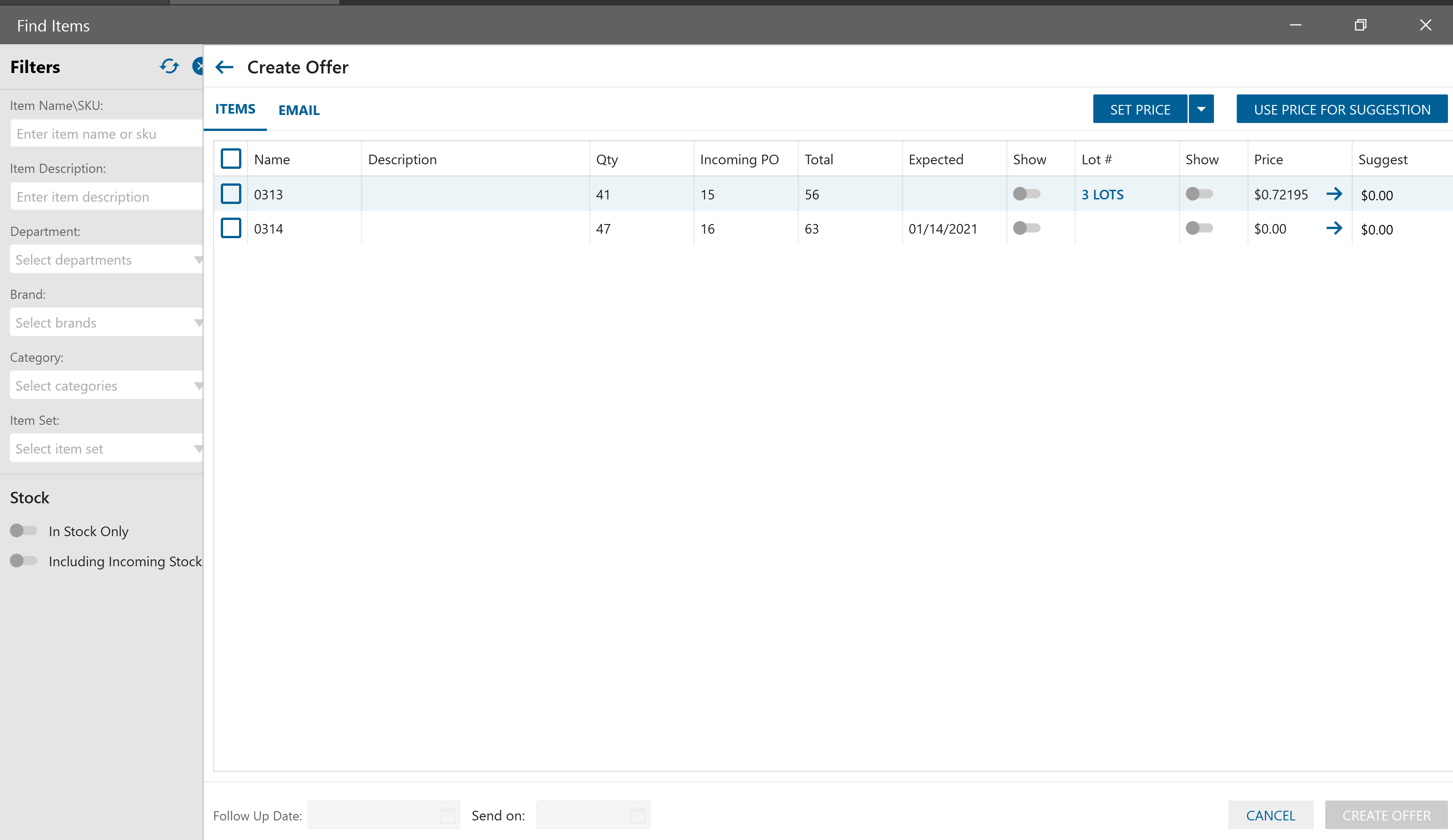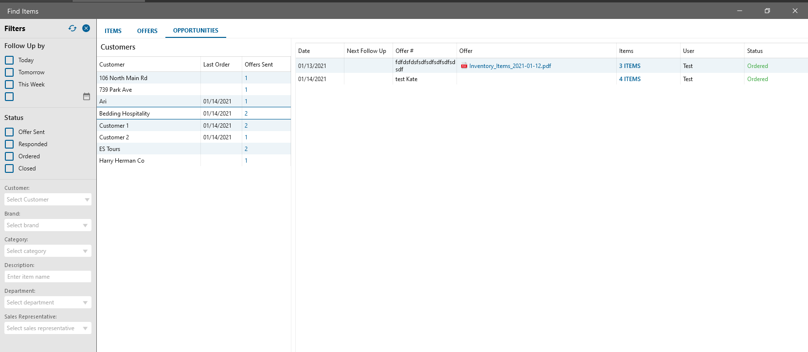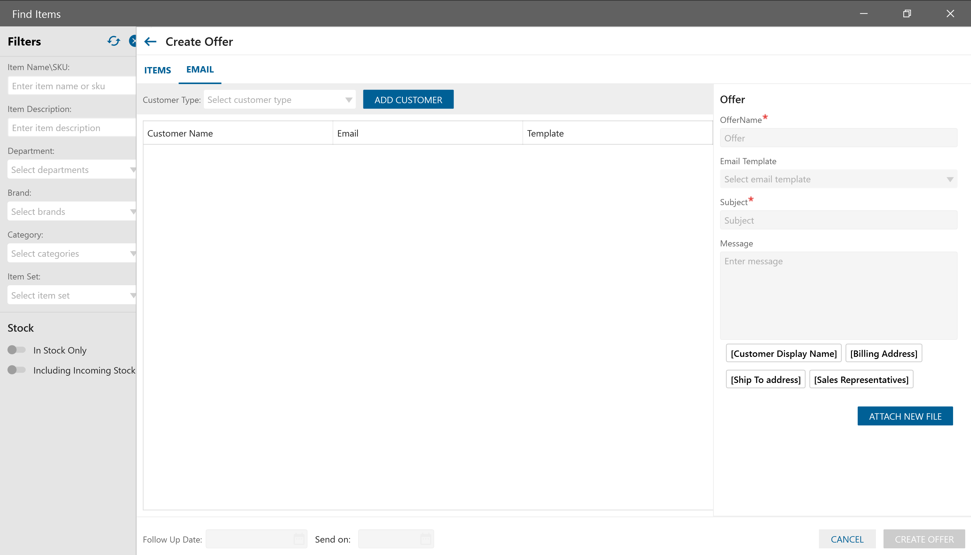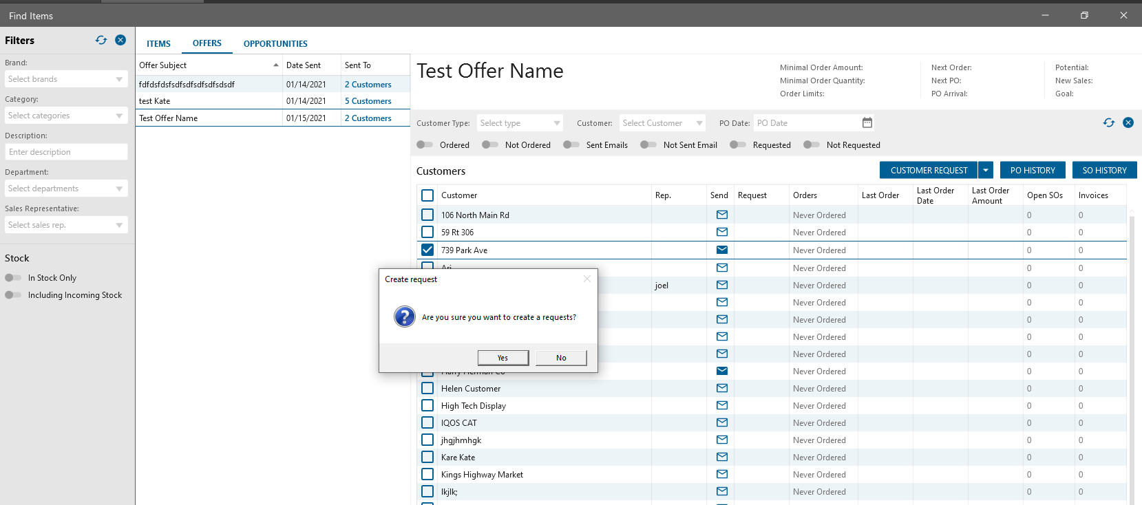 - Brand. Refers to the Customer datagrid. Displays Customer that has offers with items with specified Brand