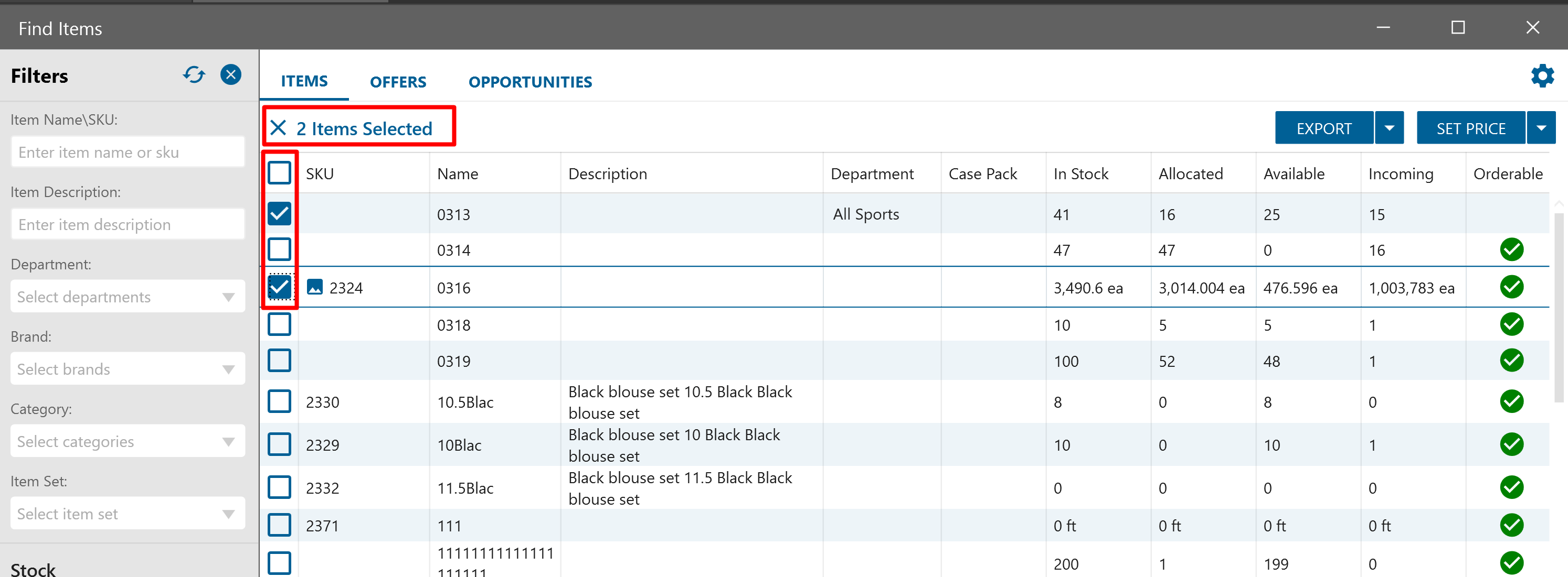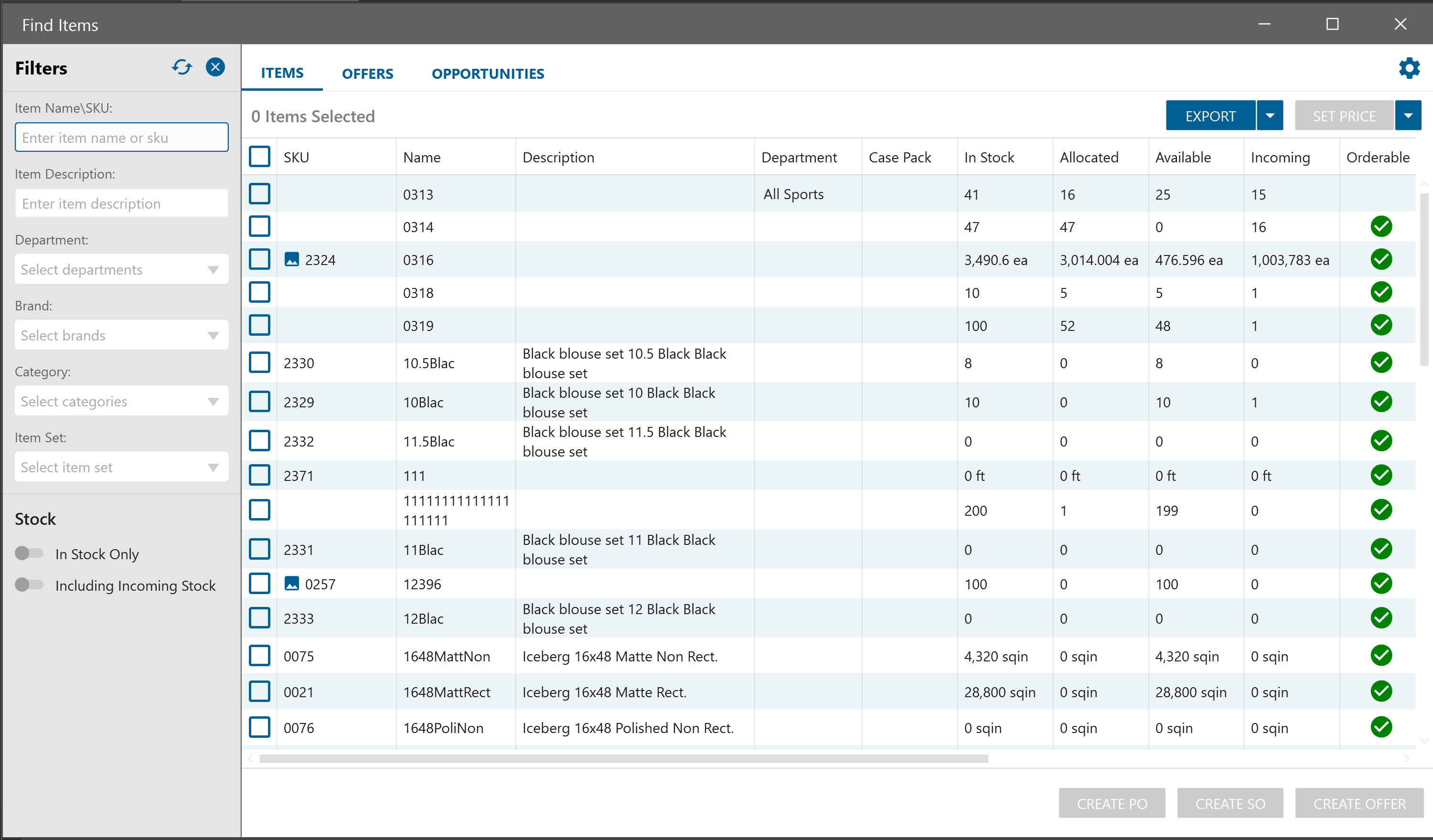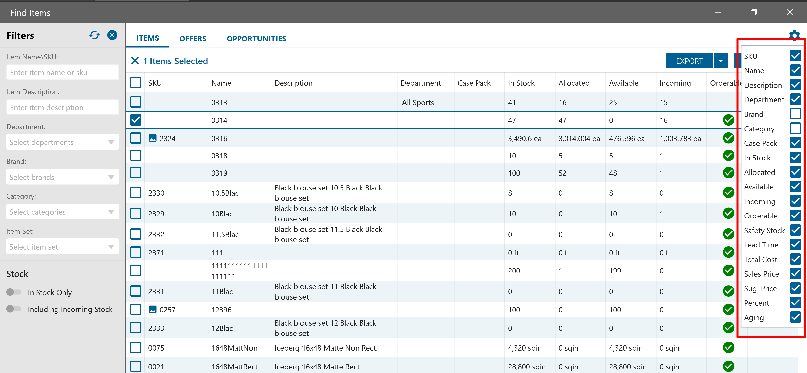 - Including Incoming Stock. If checkbox is checked then all items with in Process POs will be displayed