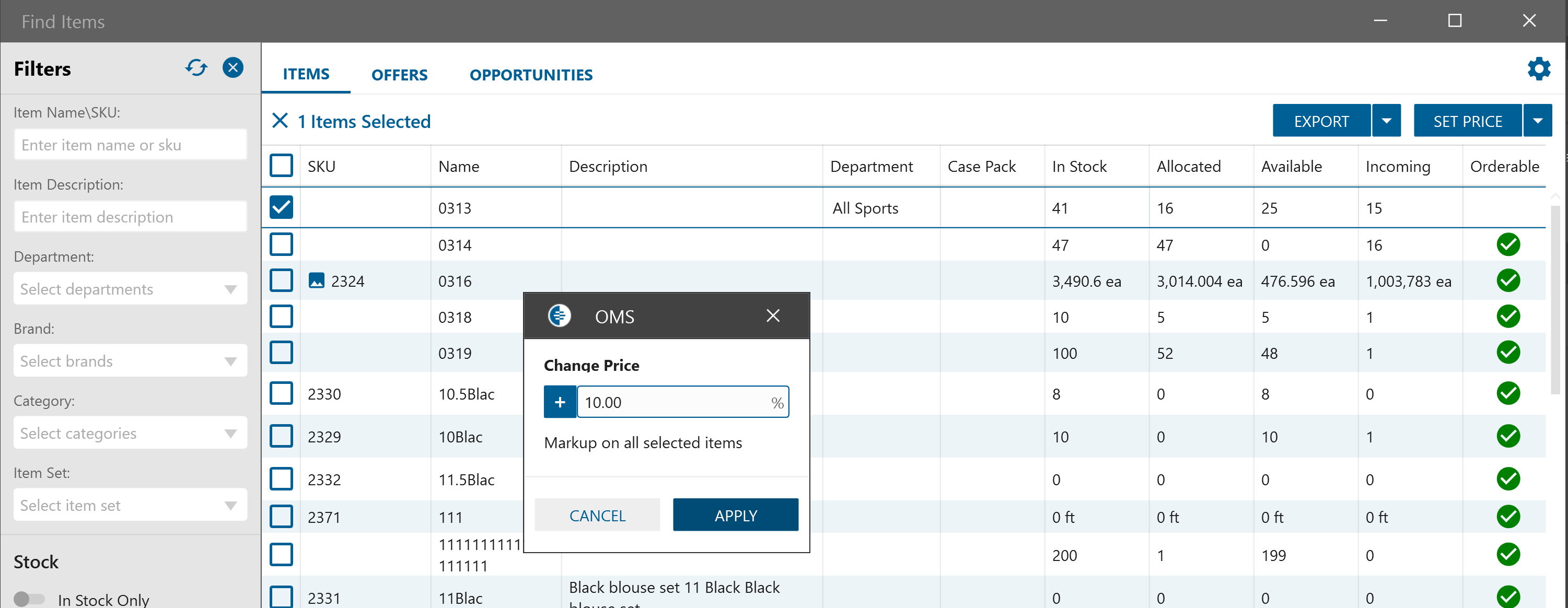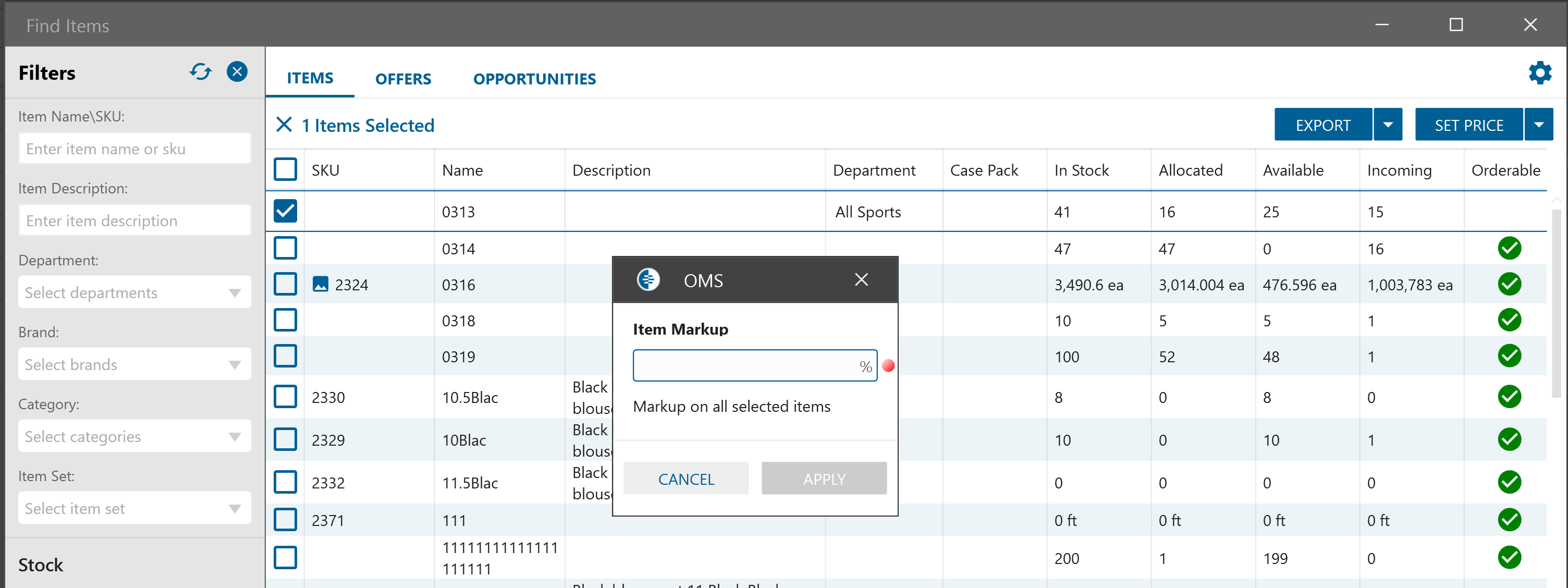 - the Sug. price will be changed according to entered Markup for all checked Items