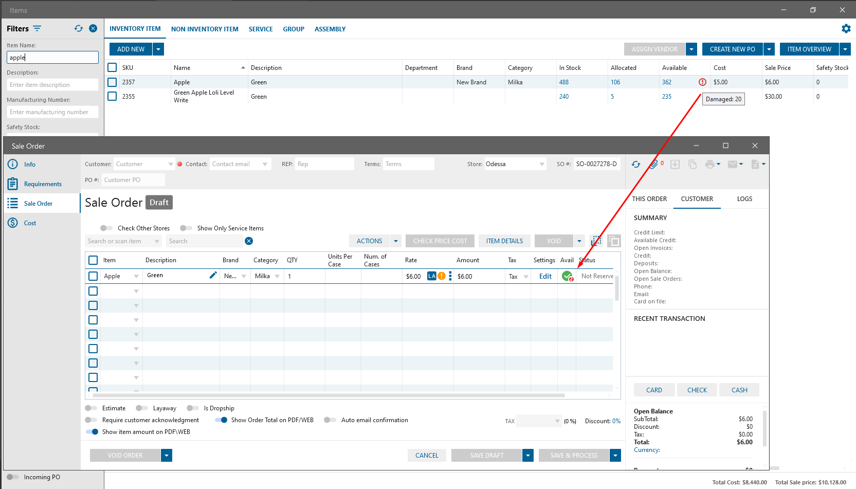 User can be aware of Damage Items presence by looking at the Icons in the Availability column. Grade of Damage icon is added to the Availability icons in the Availability column