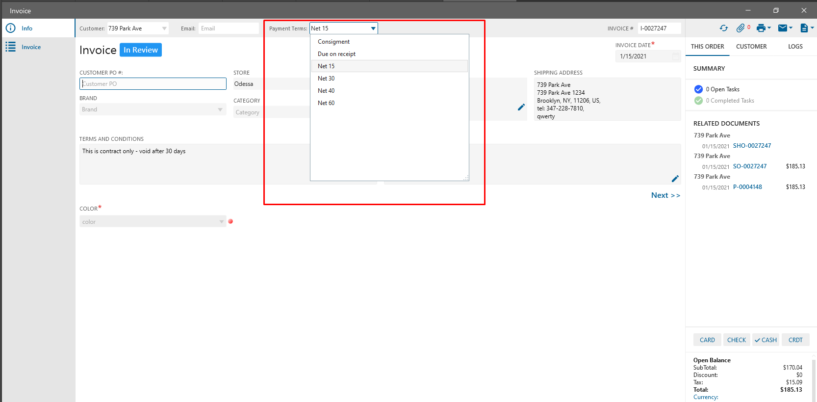 Added the ability to change Payment Term by choosing Payment Term in dropdown on the Invoice edit form