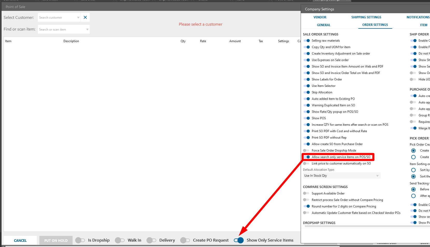 Added new setting for displaying Service Items only on SO/POS edit forms