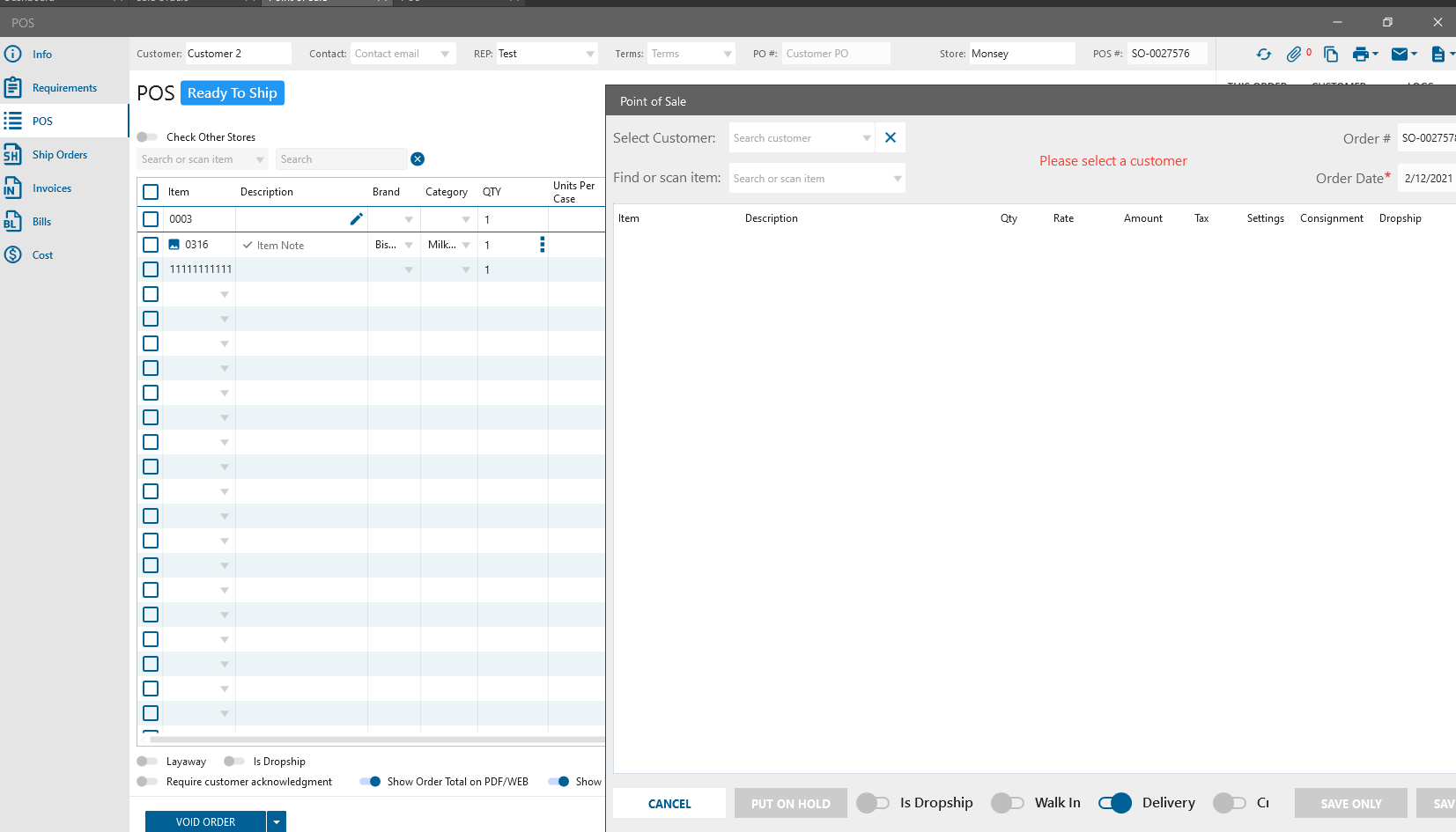 To the POS form was added Delivery checkbox for Ship Order automatic creation