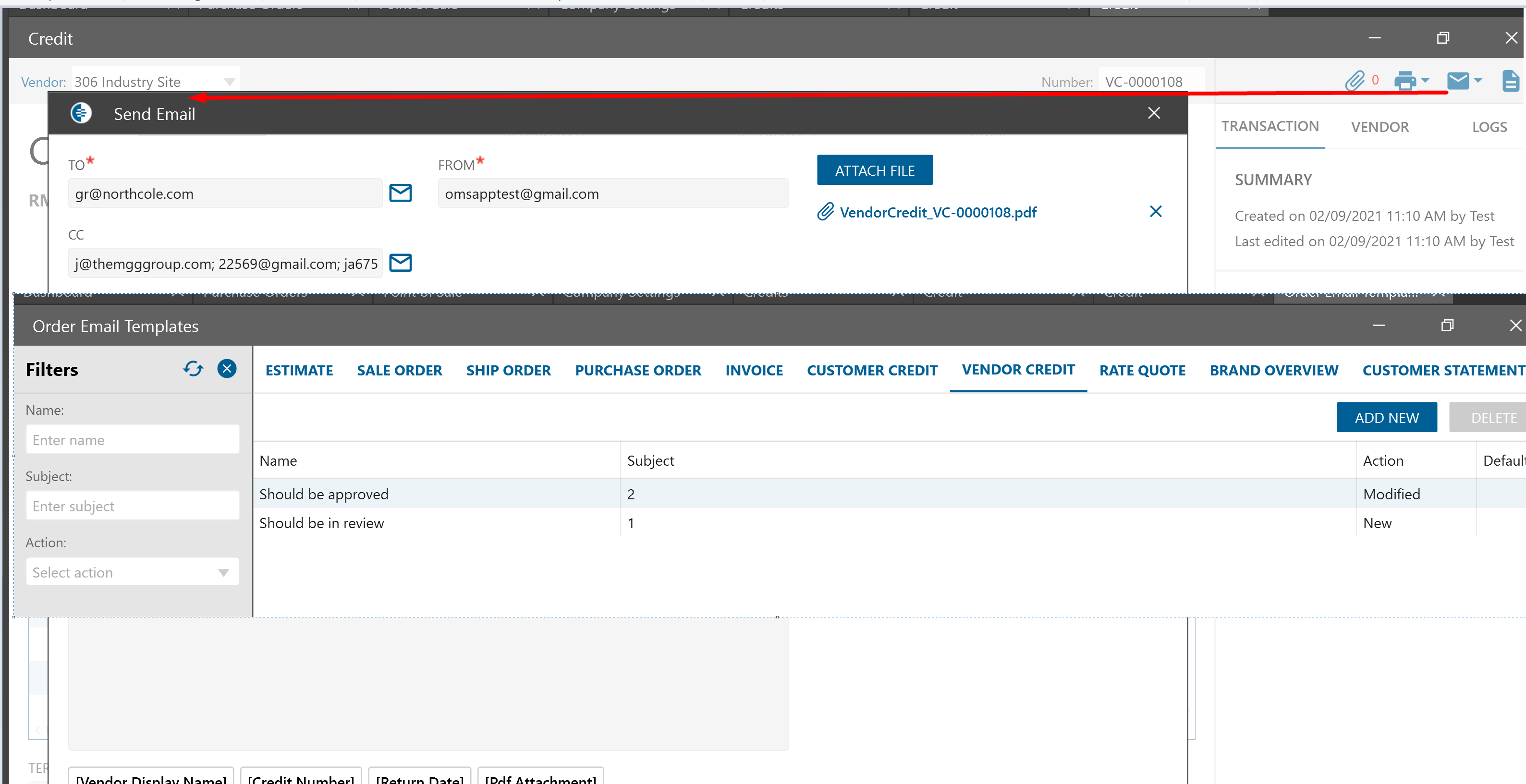 Added ability to Send emails to Vendors from Vendor Credit edit form