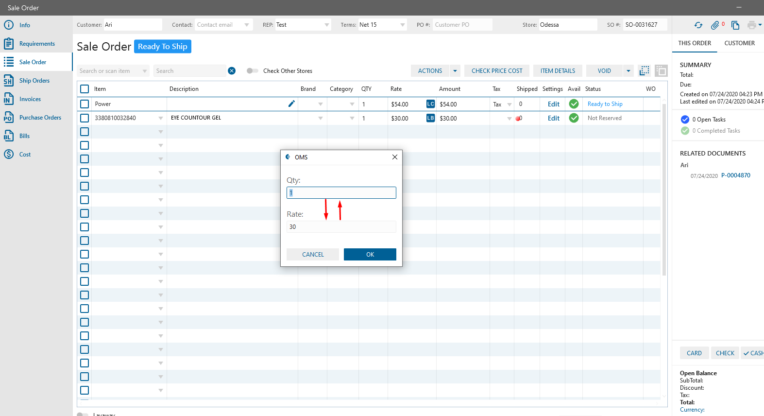 Qty and Rate fields were swapped on the Search or scan Item popup