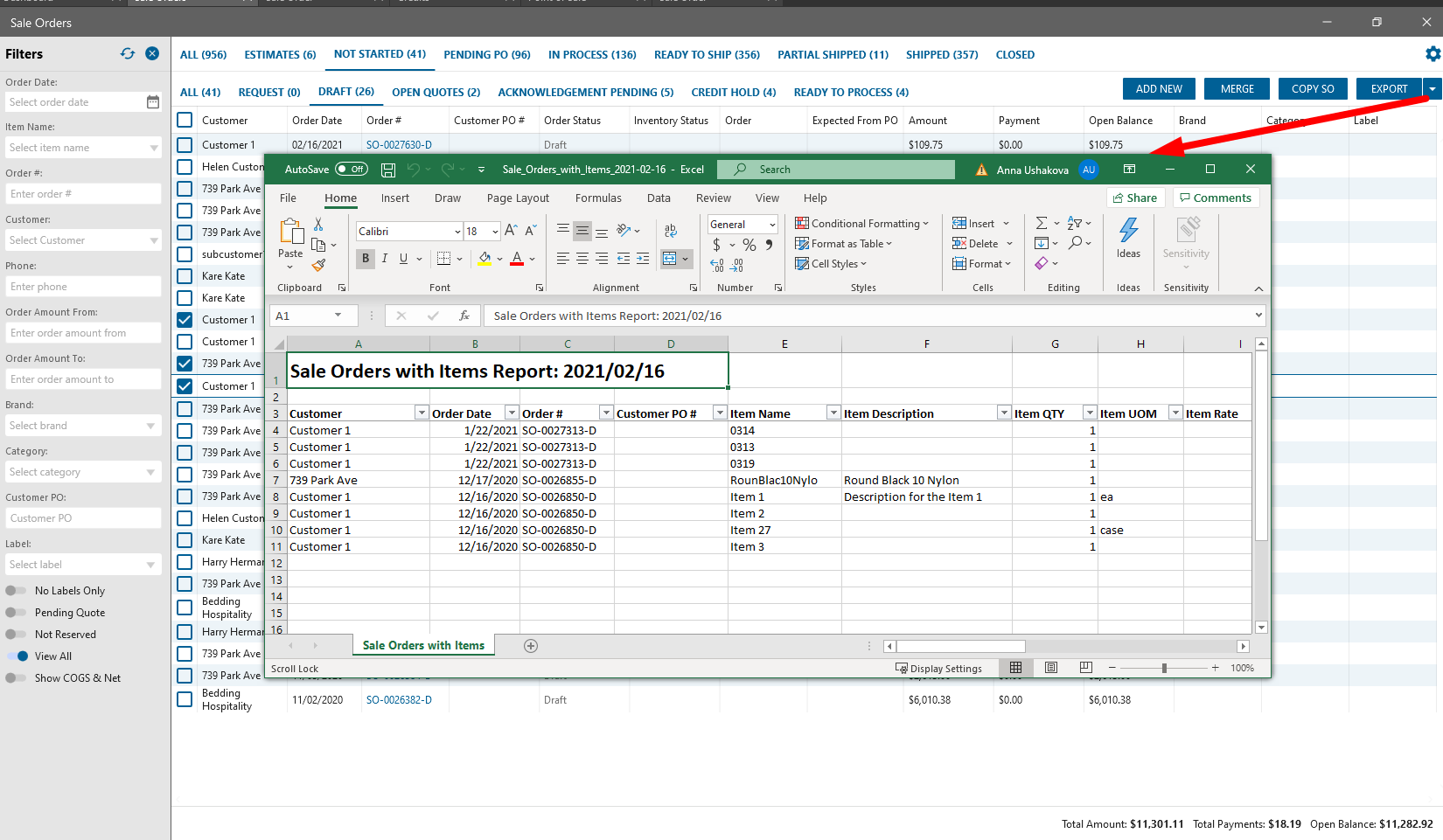 Added ability to export to Excel file SO lines Items. For this ability “Export to Excel with Items” button was added to the “Export” multi-button