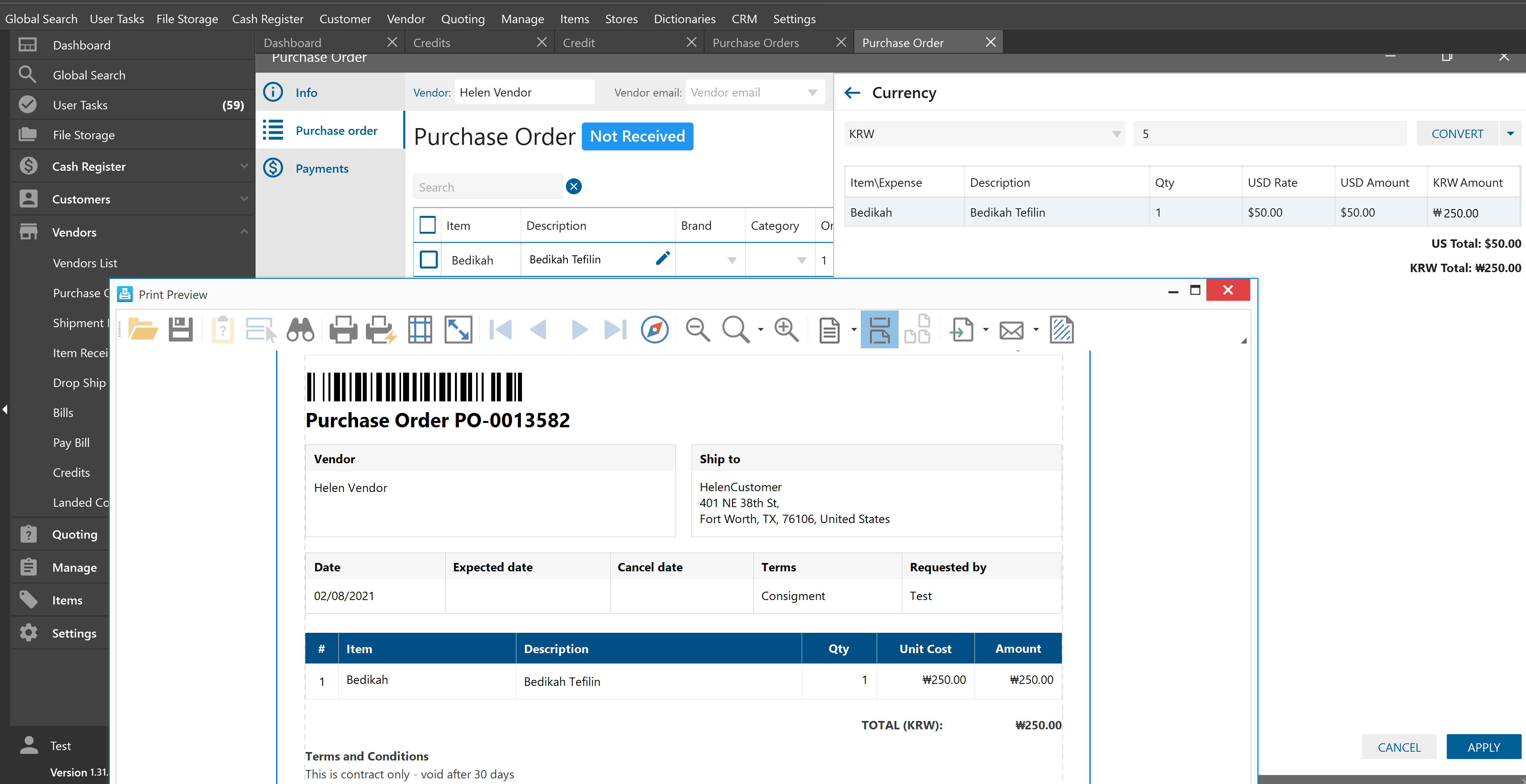 - set different to main currency, Exchange Rate -> click Convert button -> click Apply button
