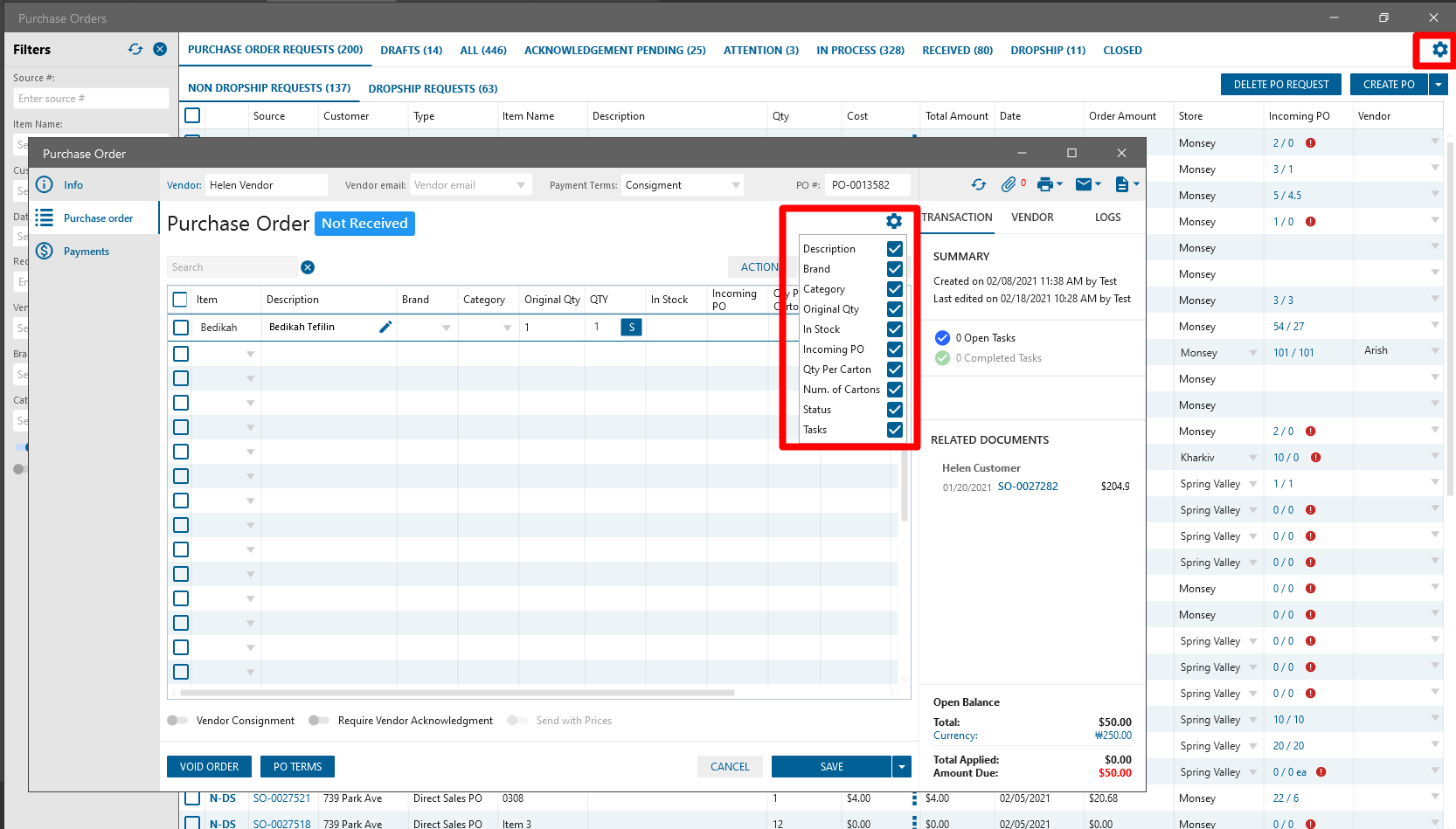 Added column picker on PO / PO Requests list forms, PO edit form