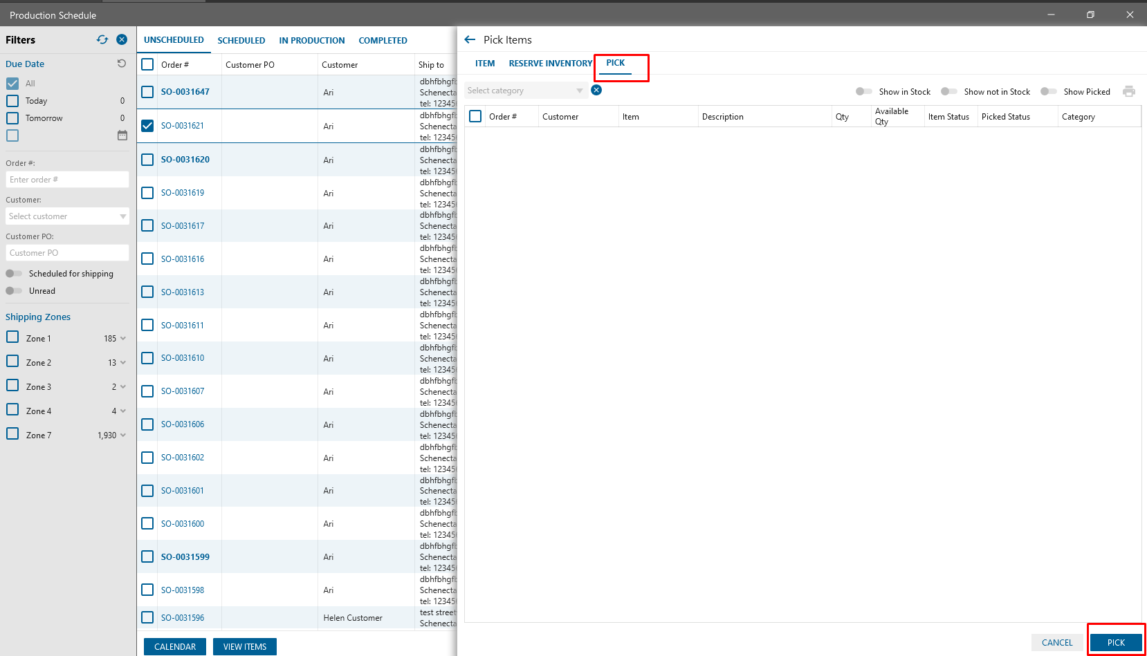 - Added ability to pick Items on the Reserve Inventory panel (Production Schedule)