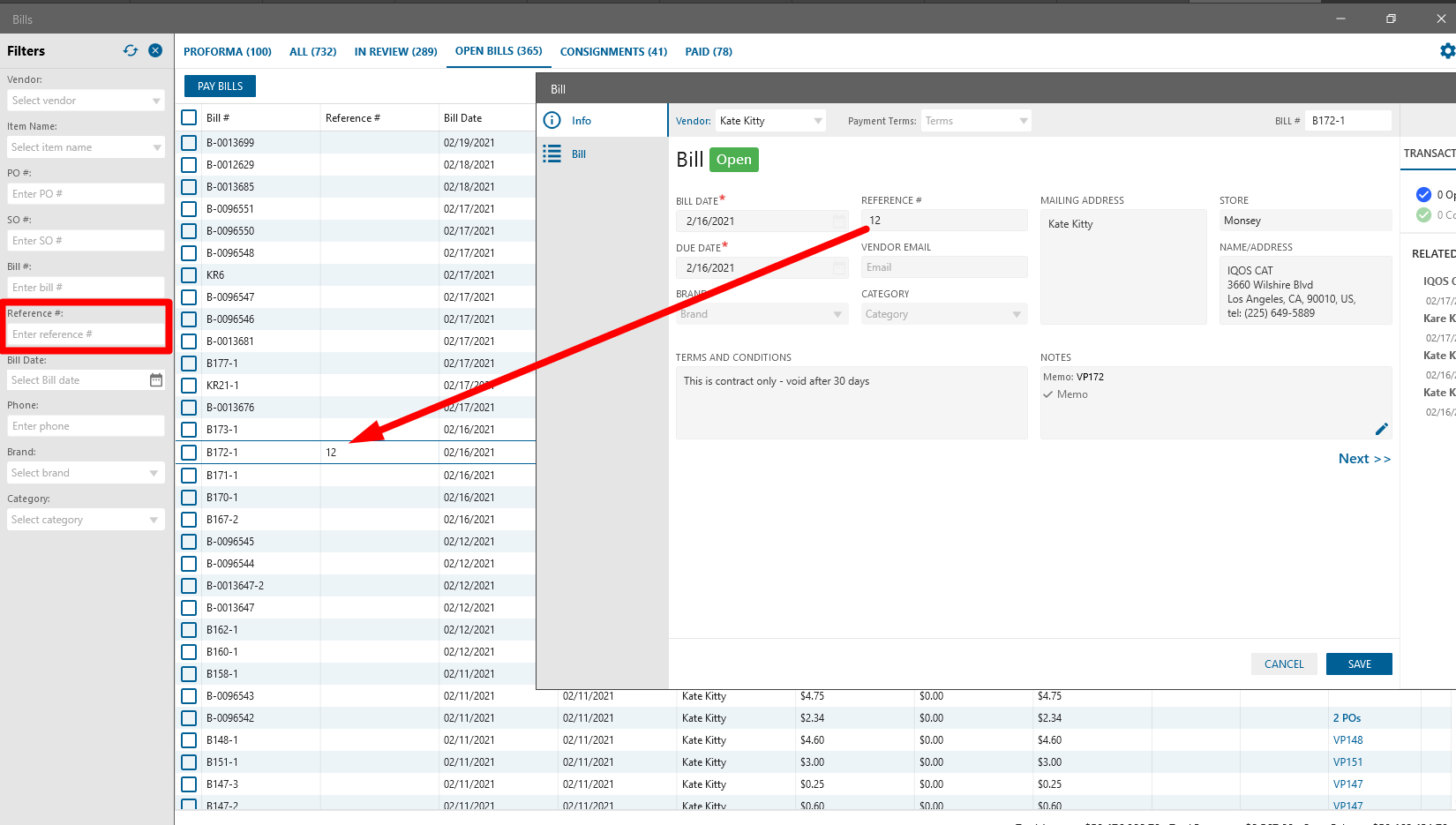 On the Bill list form should be displayed Reference # taken from the corresponding edit form