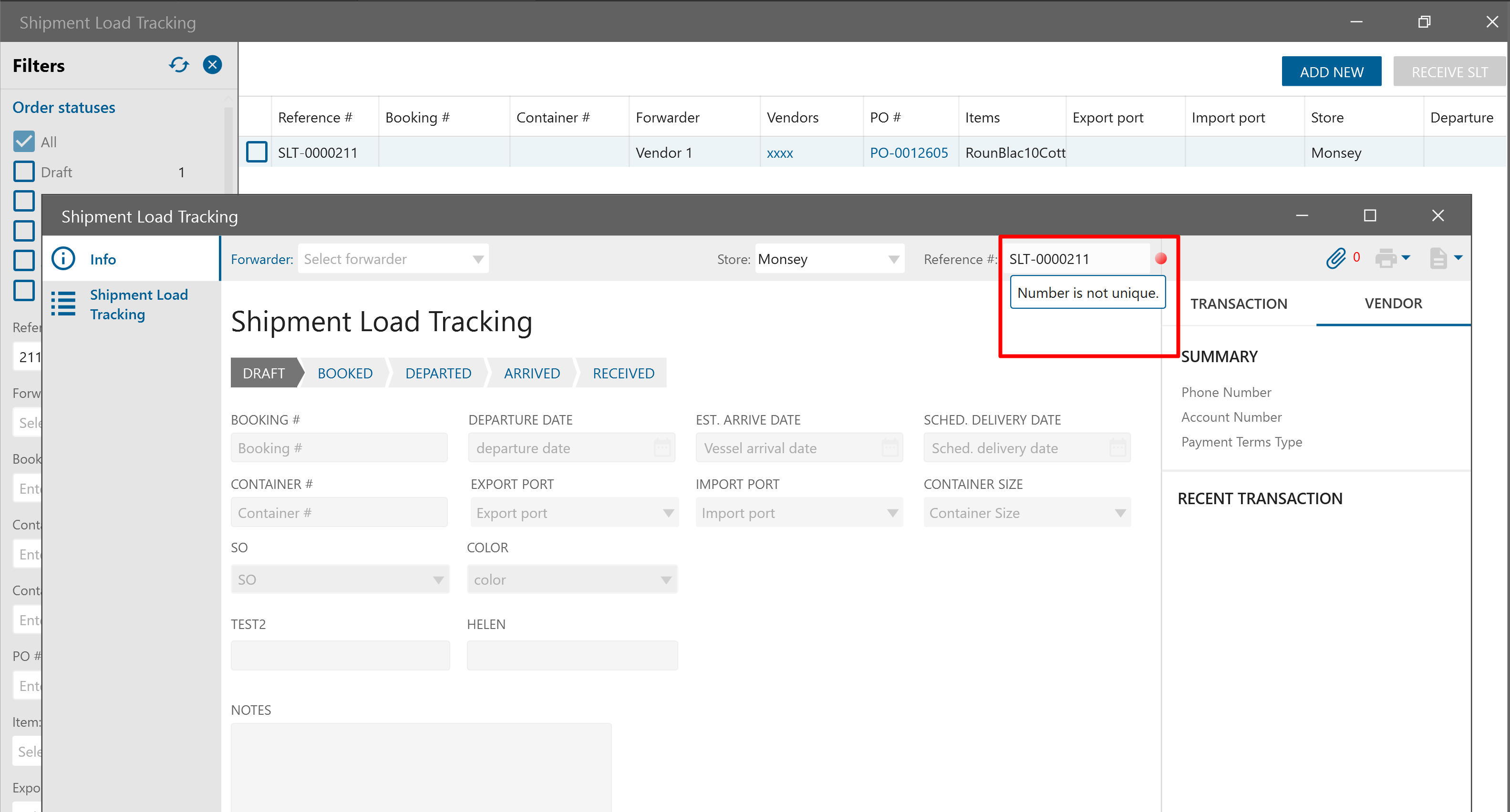 Expected result: SLT order shouldn’t be possible to create due to validation