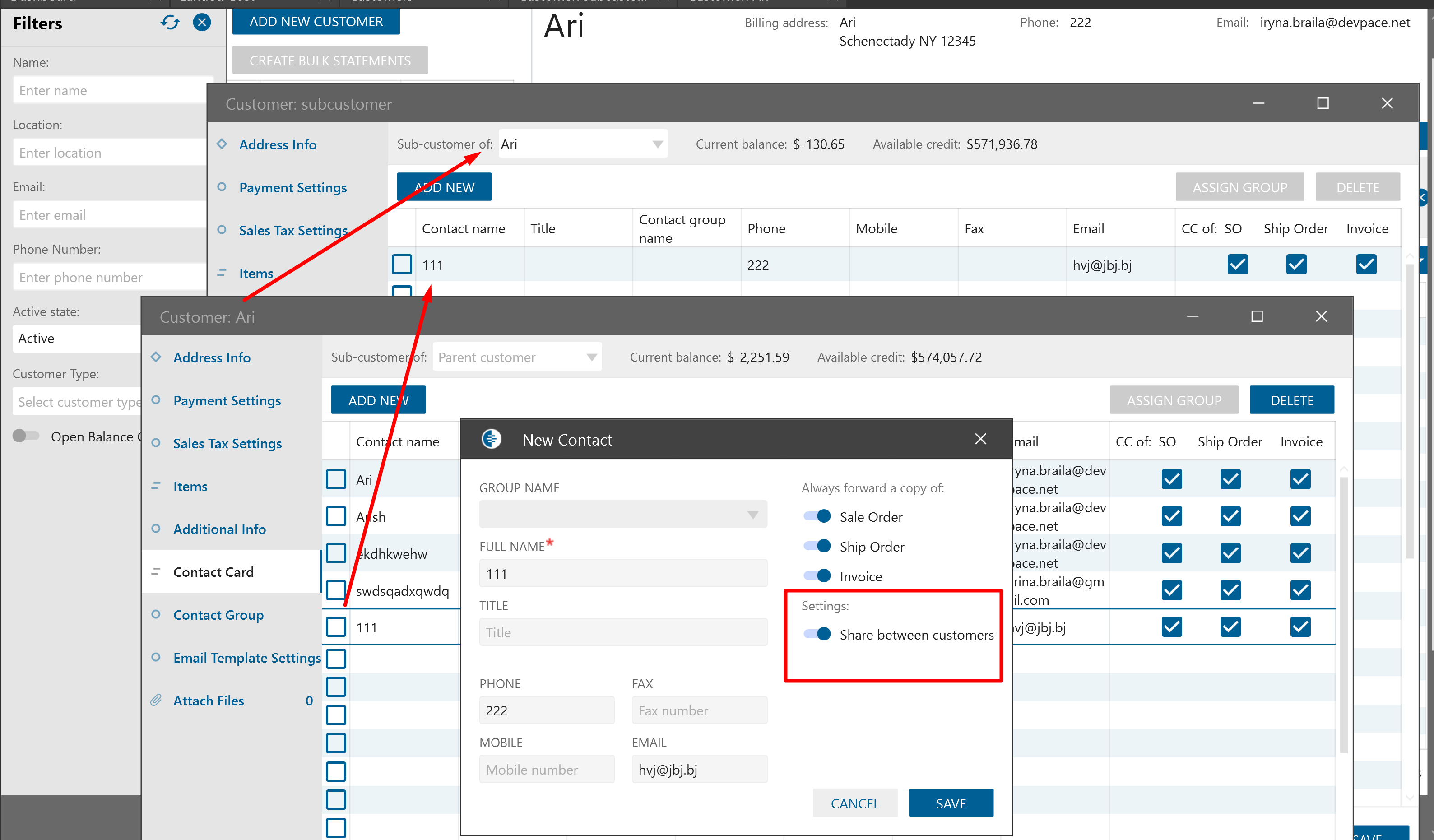 For the ability to share Contact card data among all related Customers new setting “Share between Customers” was implemented