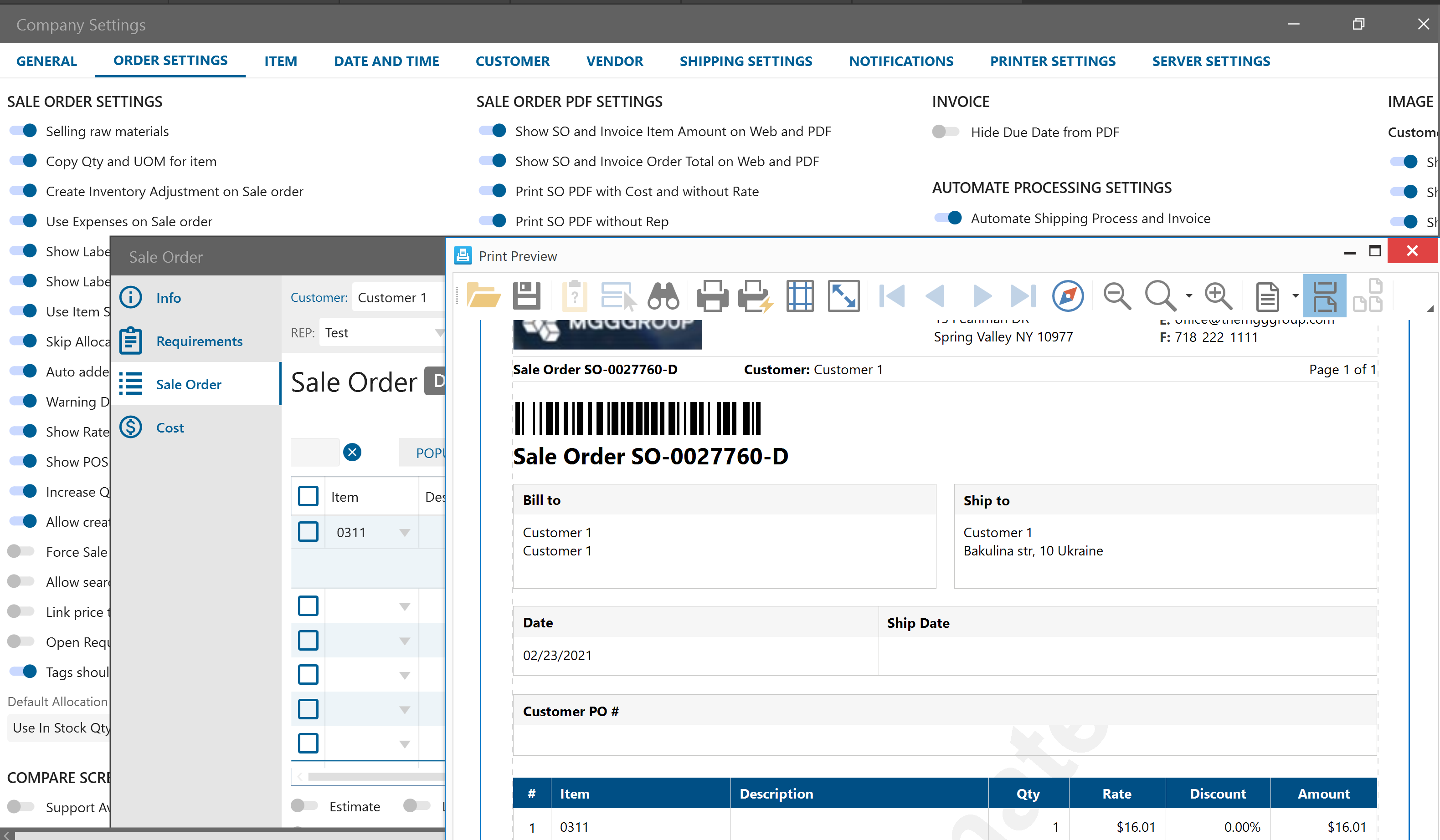 If Company Setting is checked on the on the SO pdf won’t be present Rep section