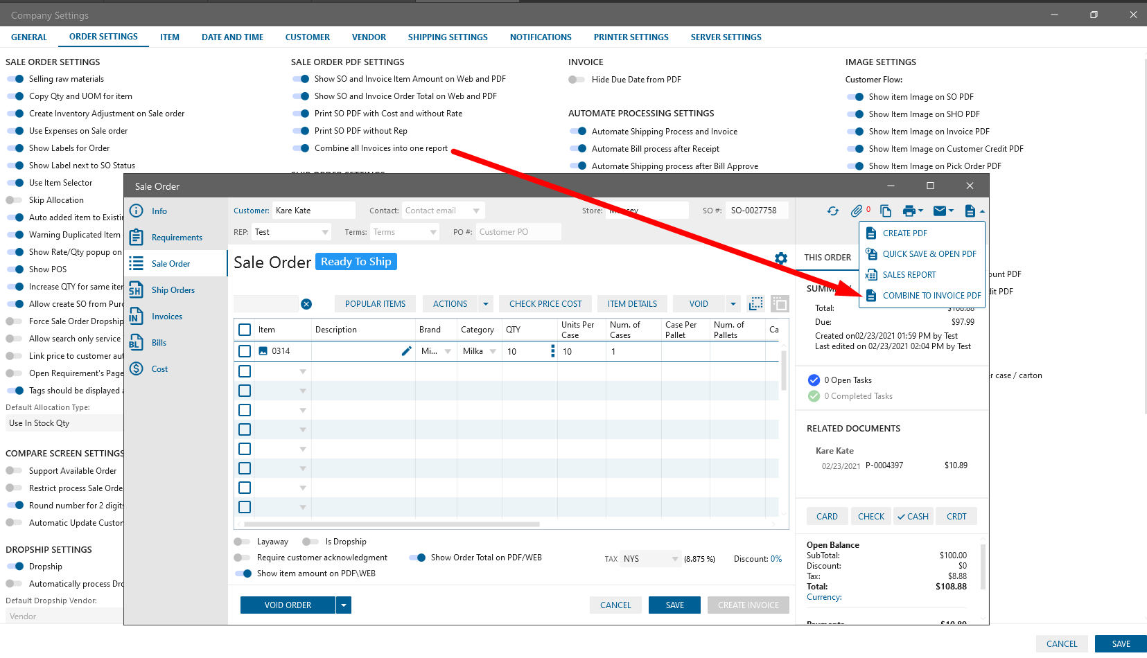 For the ability to Combine all Invoices into one report, corresponding Setting was added to the Company Settings