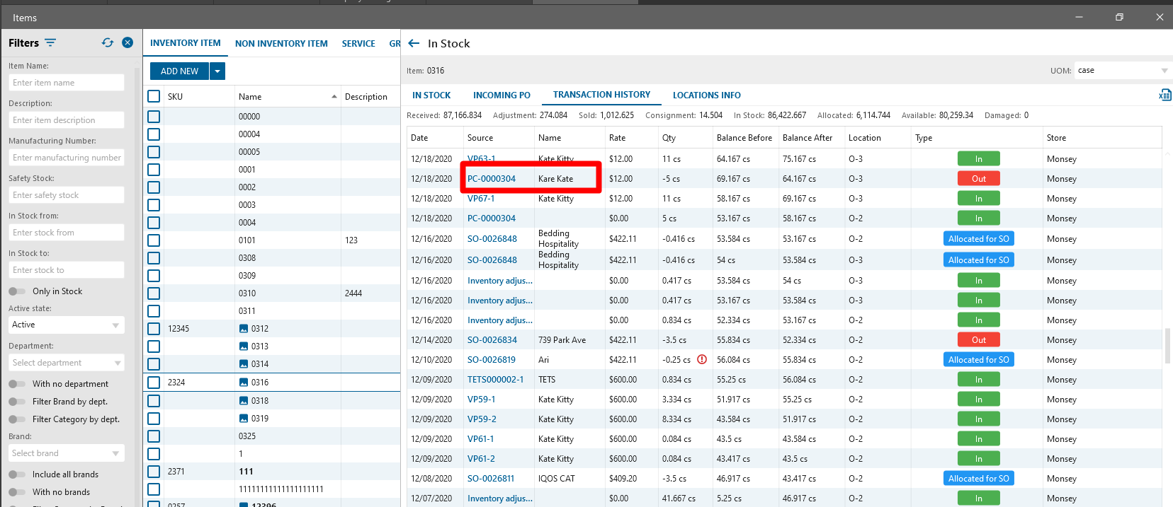 Expected result: Customer Name should be displayed on Transaction History panel for Pick Order
