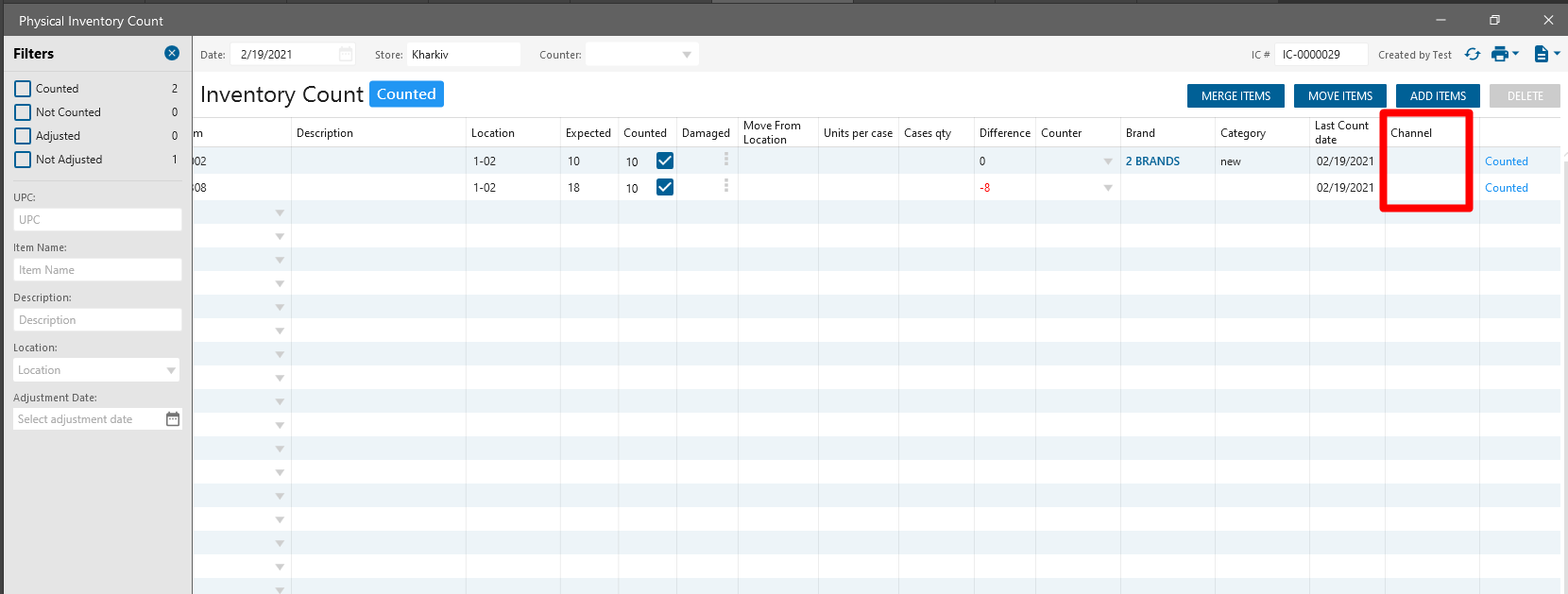 Added Channel Column on Inventory Count for the mapping with data in web application