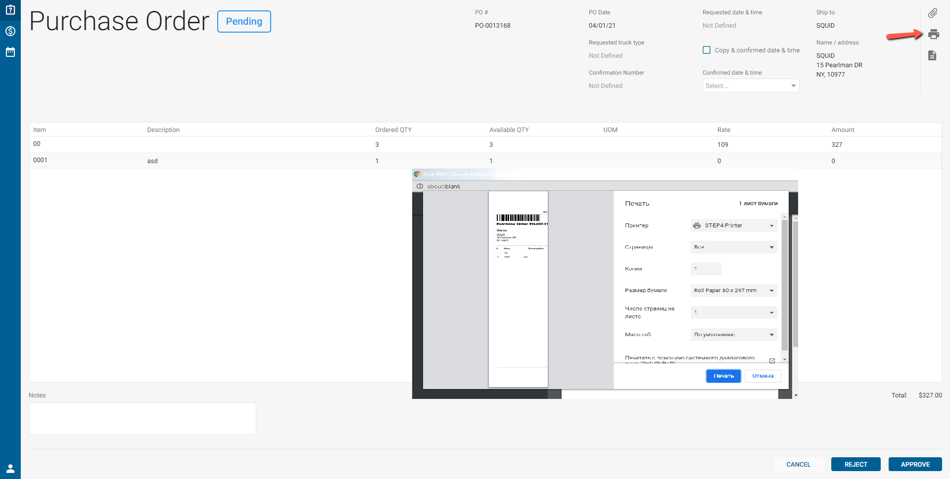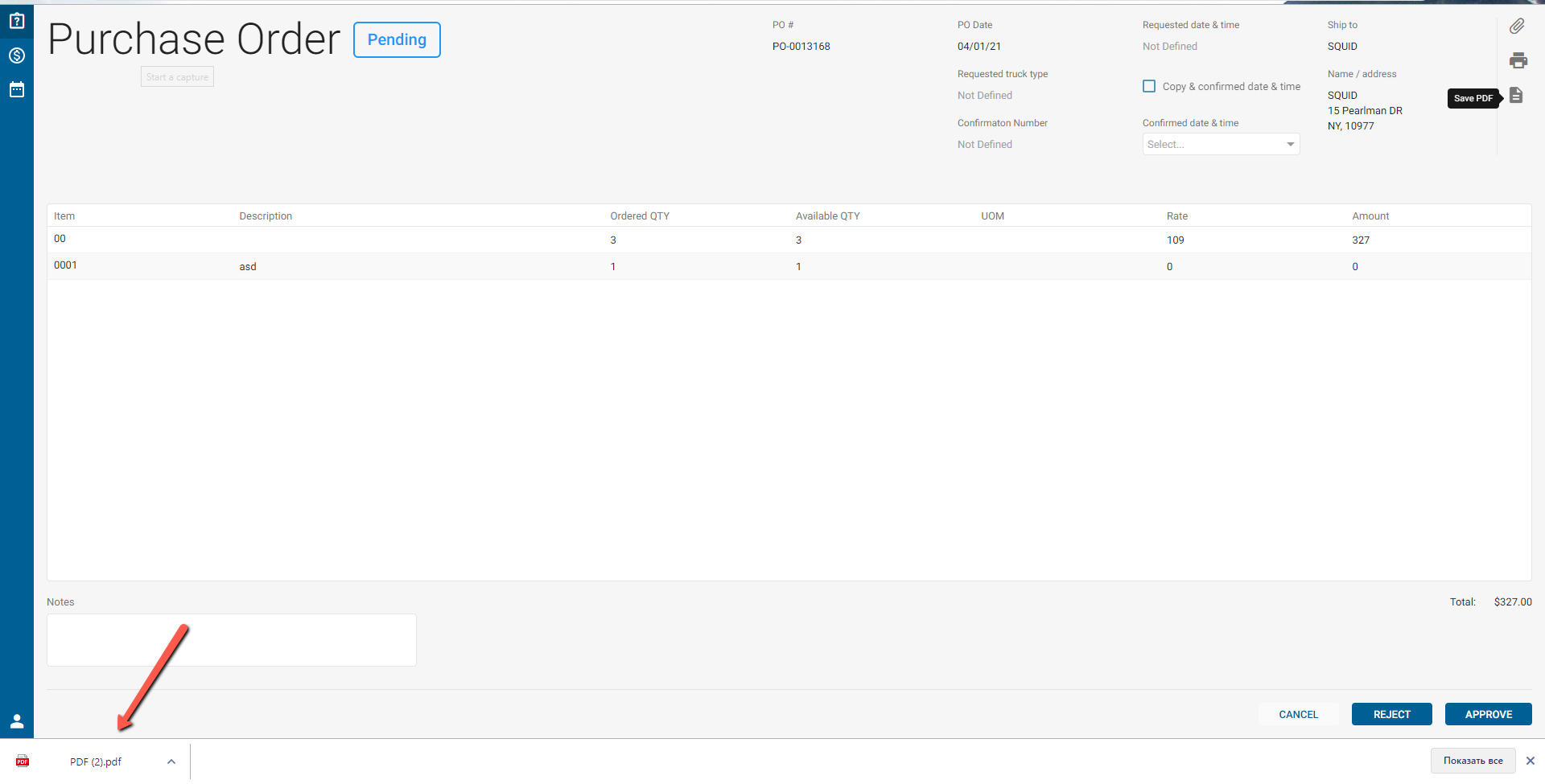 To Save PDF file of PO, Vendor Quote or Available Order, user needs to do the next steps: