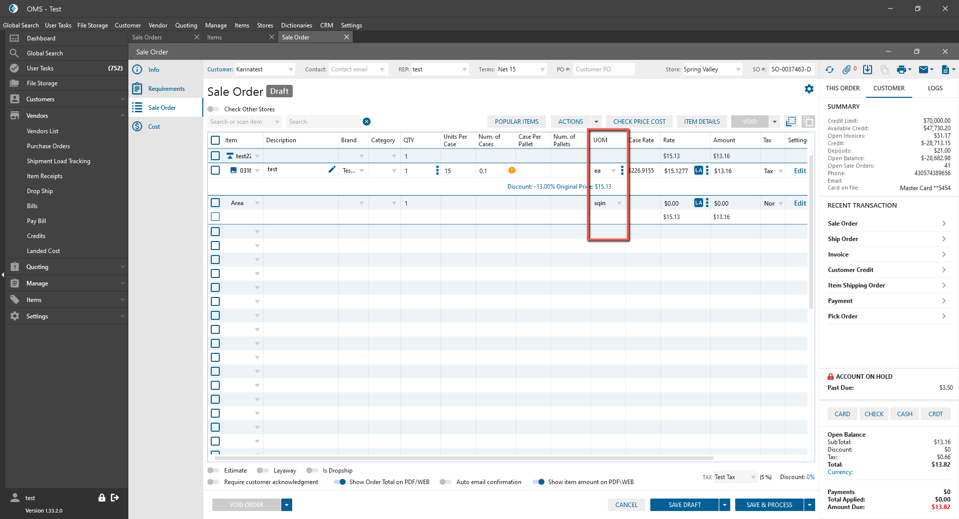 To make UOM column abled, user needs to do the next steps: