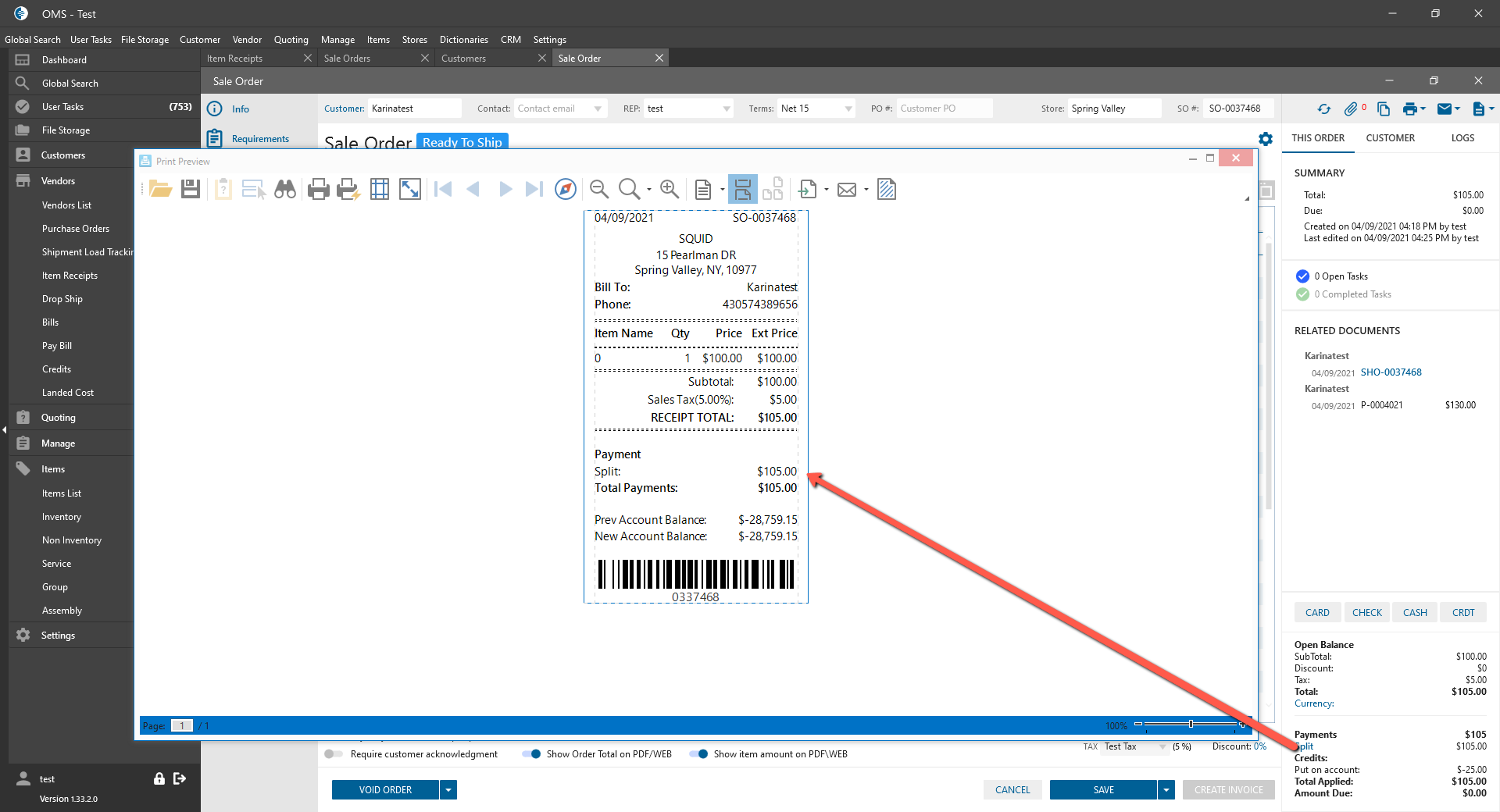 User can add split payment to the SO. After that split payment is displayed in the Thermal Receipt.