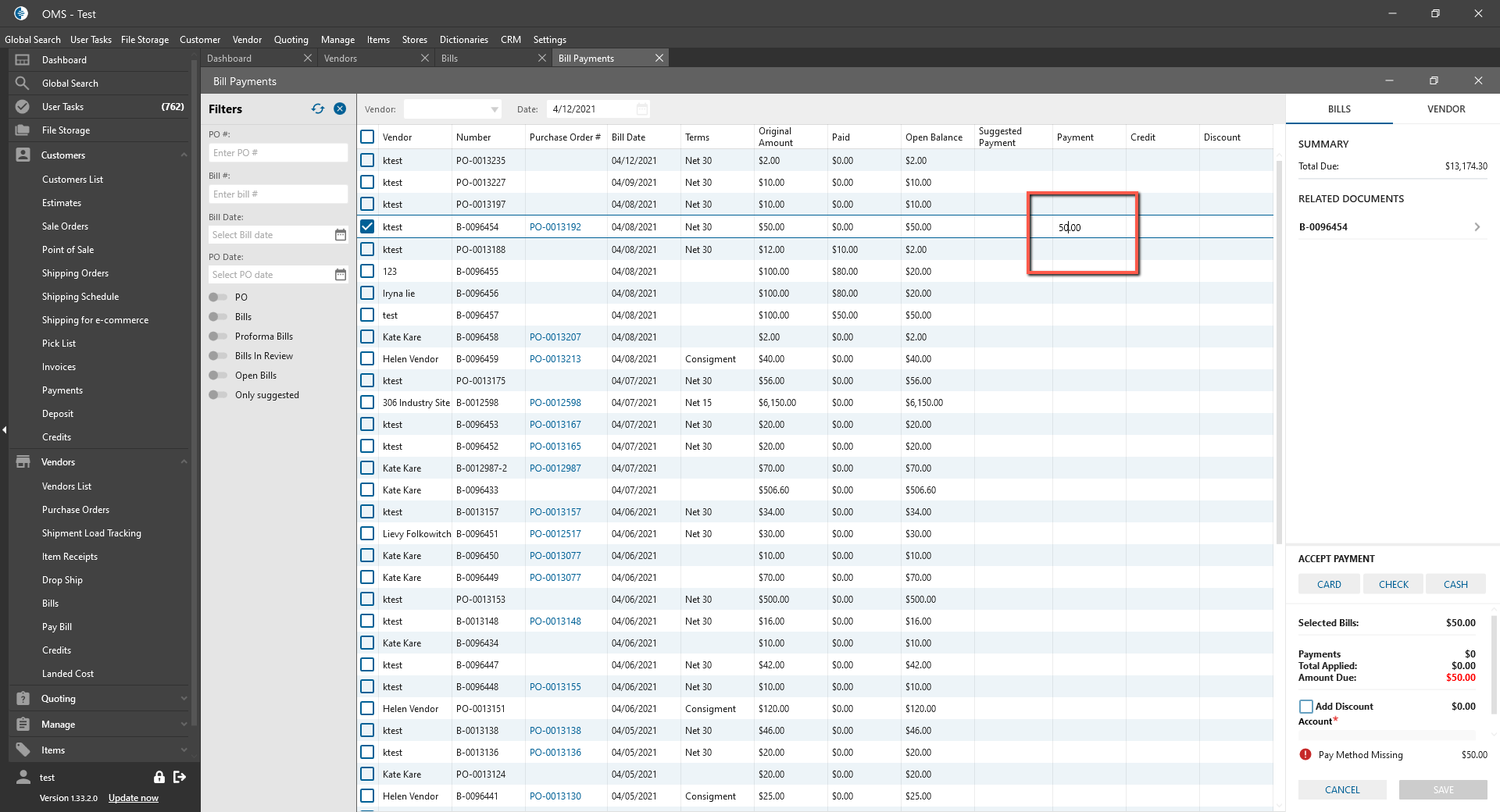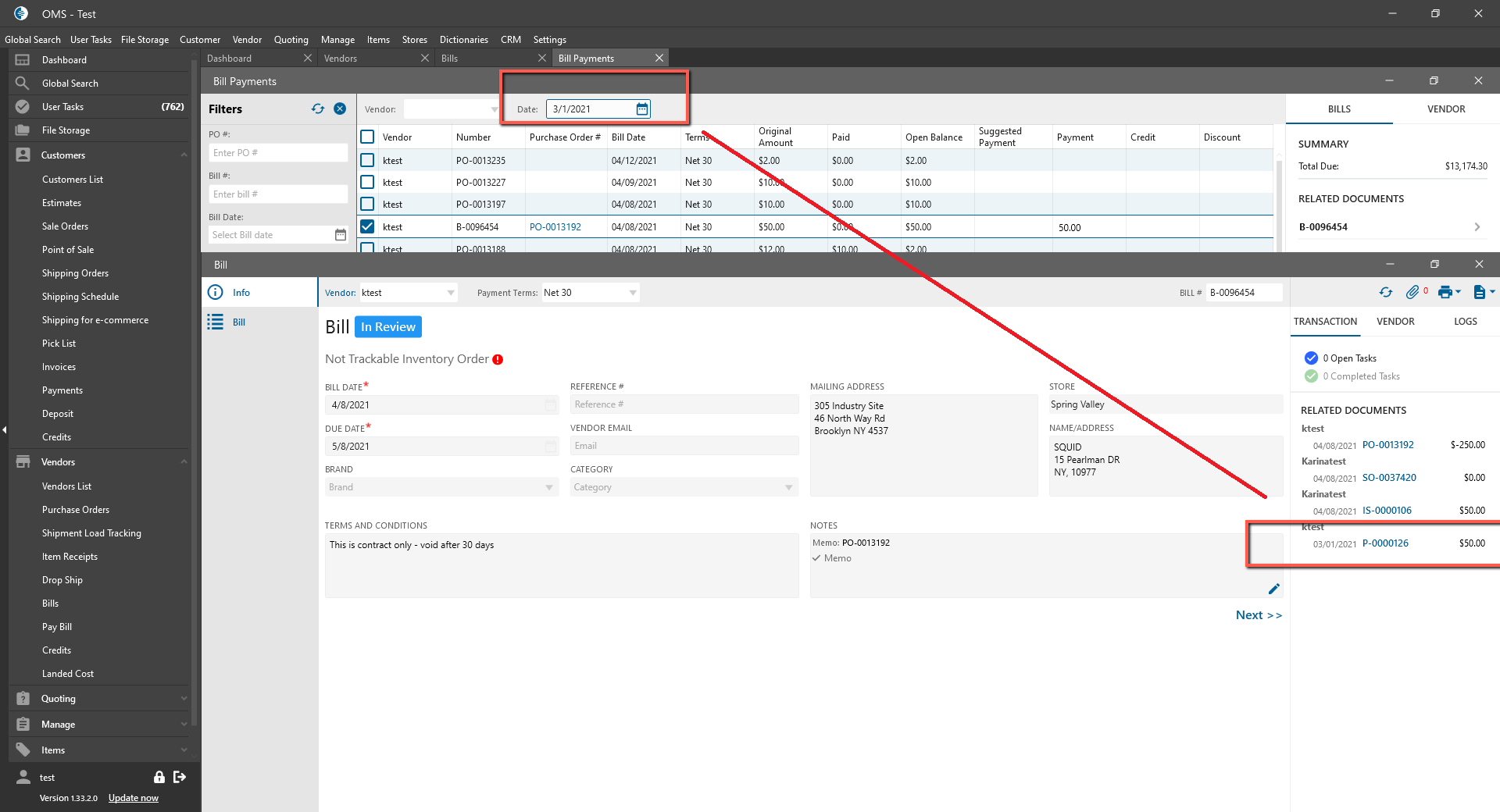 - Open Pay Bill form -> Check any Bill -> add Payment;