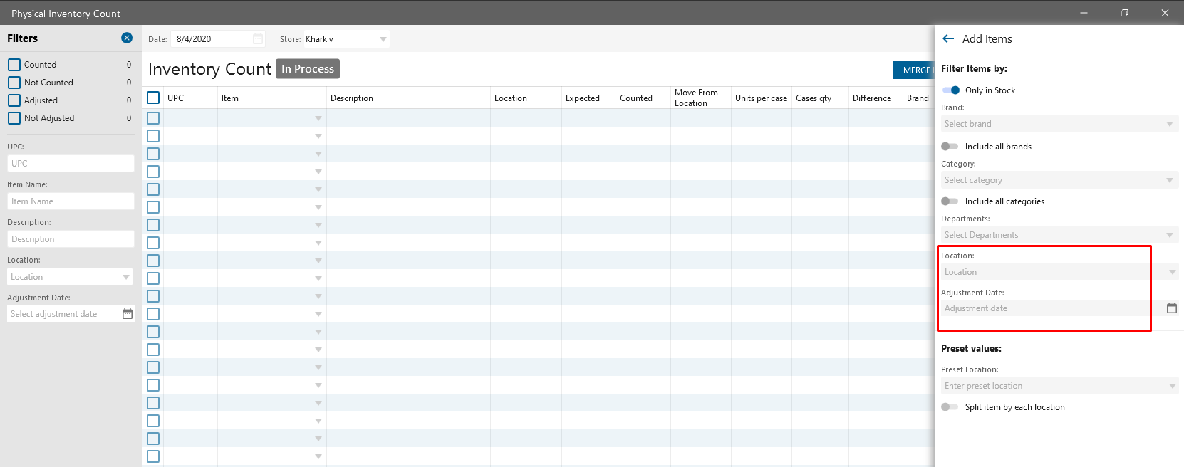 - Added “Location” and “Adjustment date” fields to the “Add Item” Panel.