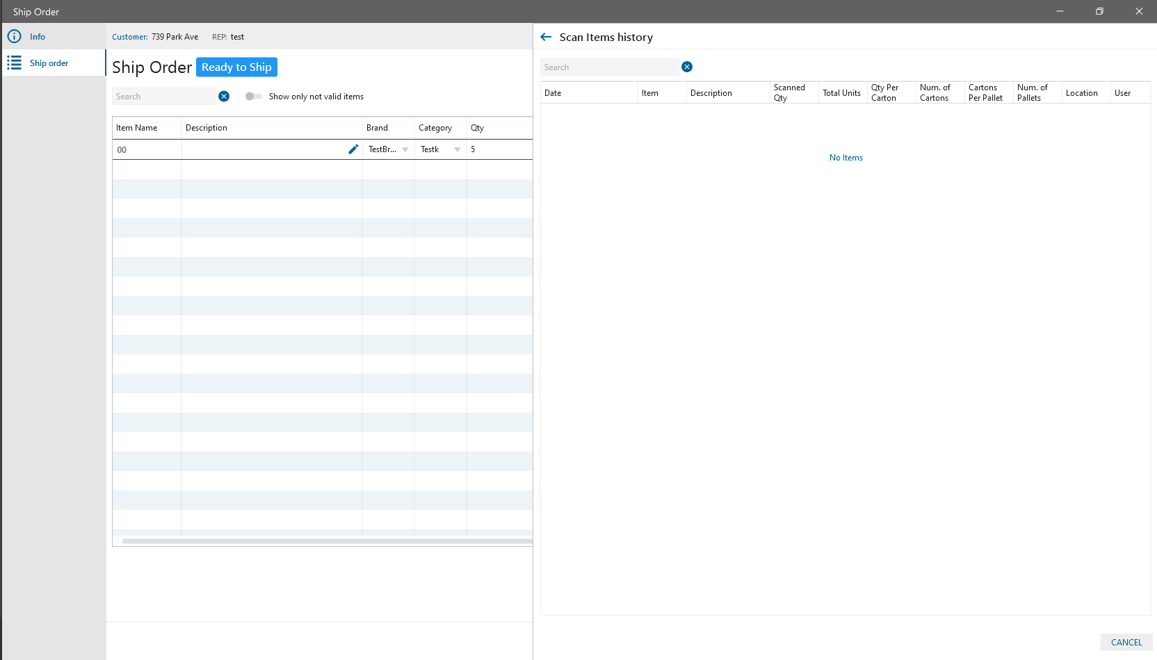 - Scan Item multibutton was added to the Ship Order for the ability to scan items. It contains two buttons: Scan Items/Scan Items History.