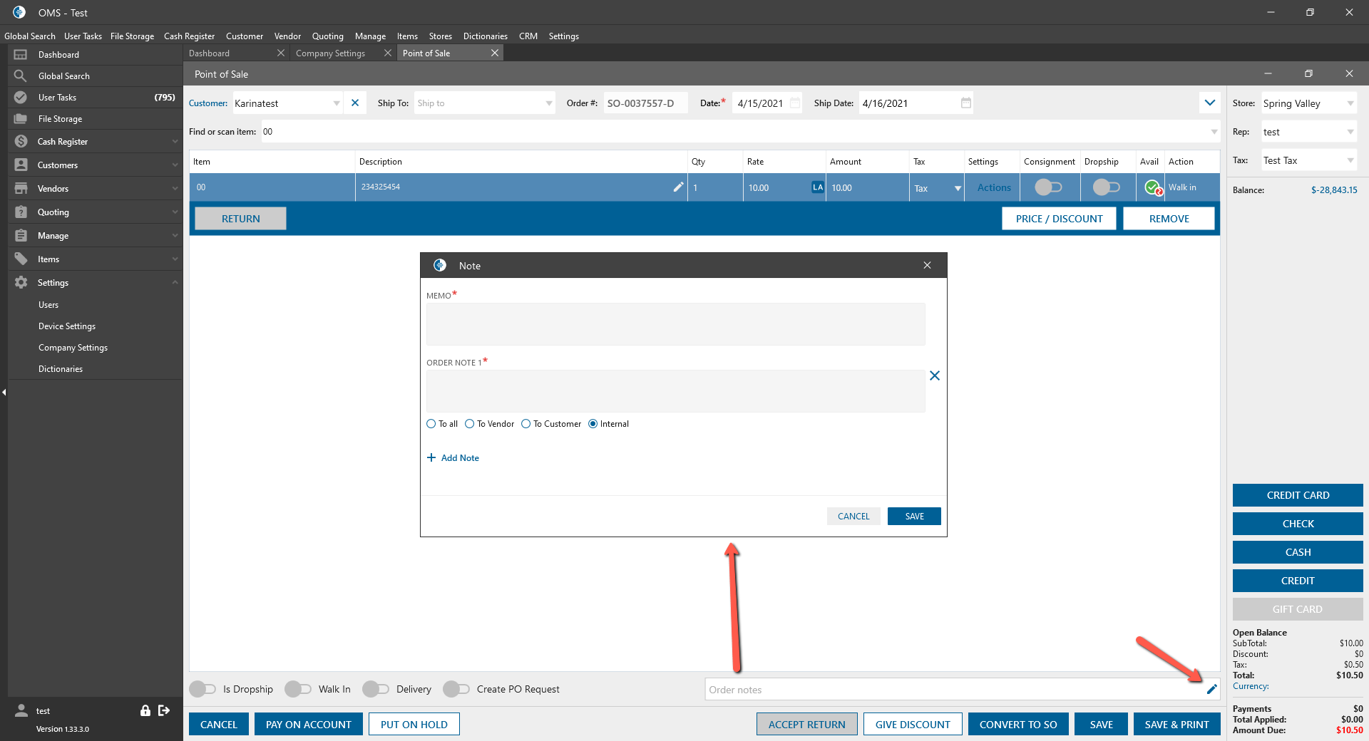 To POS form was added the ability to add Order Notes which are editable via pencil.
