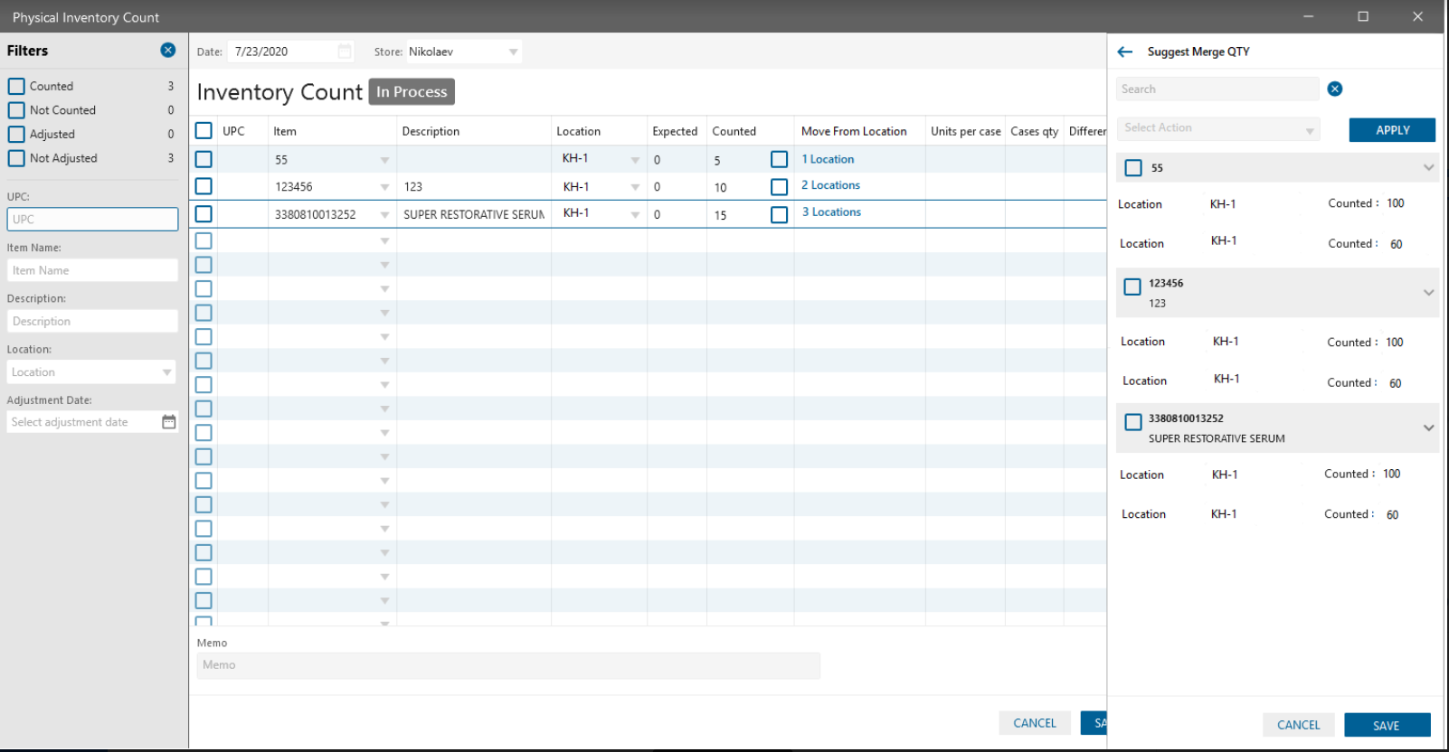 Added ability to merge Items with the same Name and Location on the Inventory Count form.