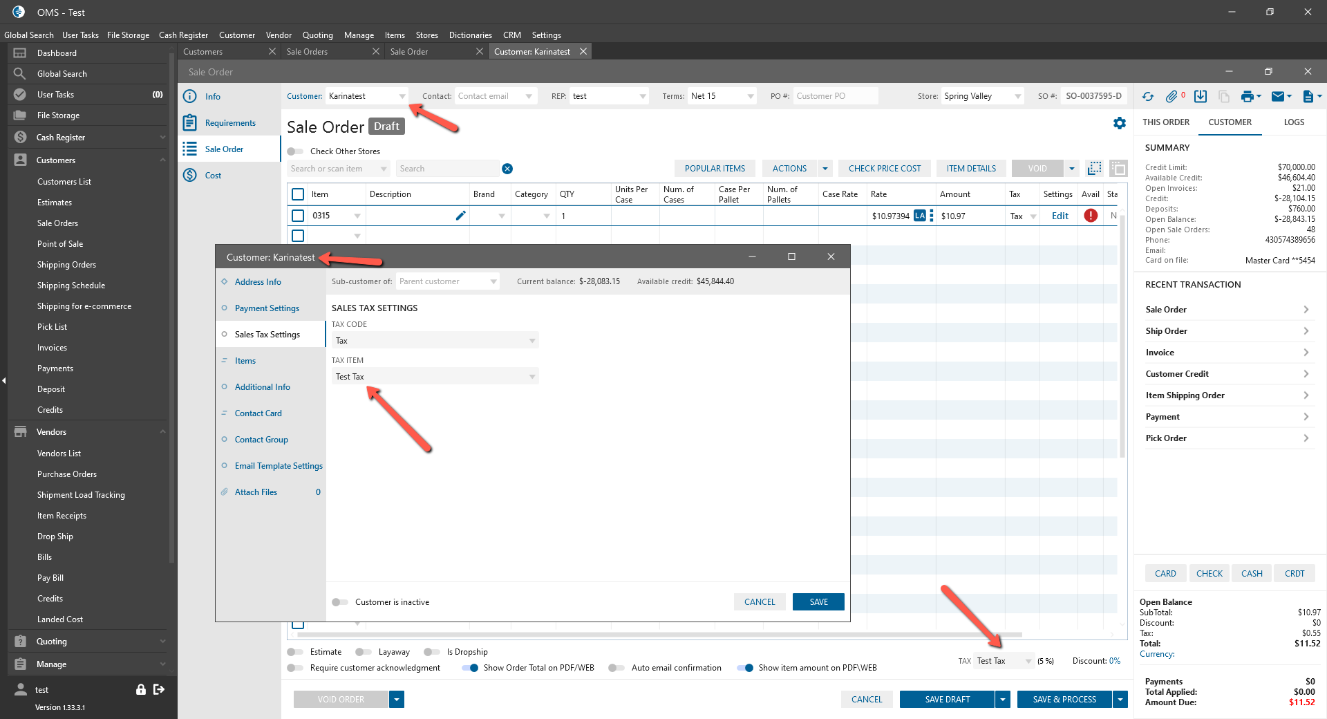 - Open customer → Sales Tax Settings → Set Tax code and Tax item settings;