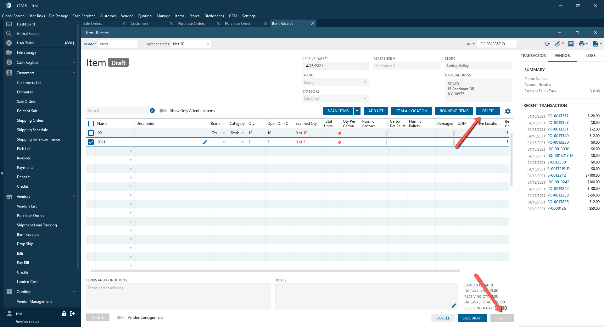 - On Item draft delete 1 item -> Fill in Total Units for Second item -> Click Save;