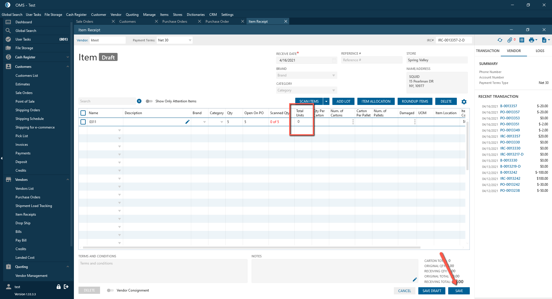 - Make IR for second item -> enter “0” into total units -> Press Save IR;