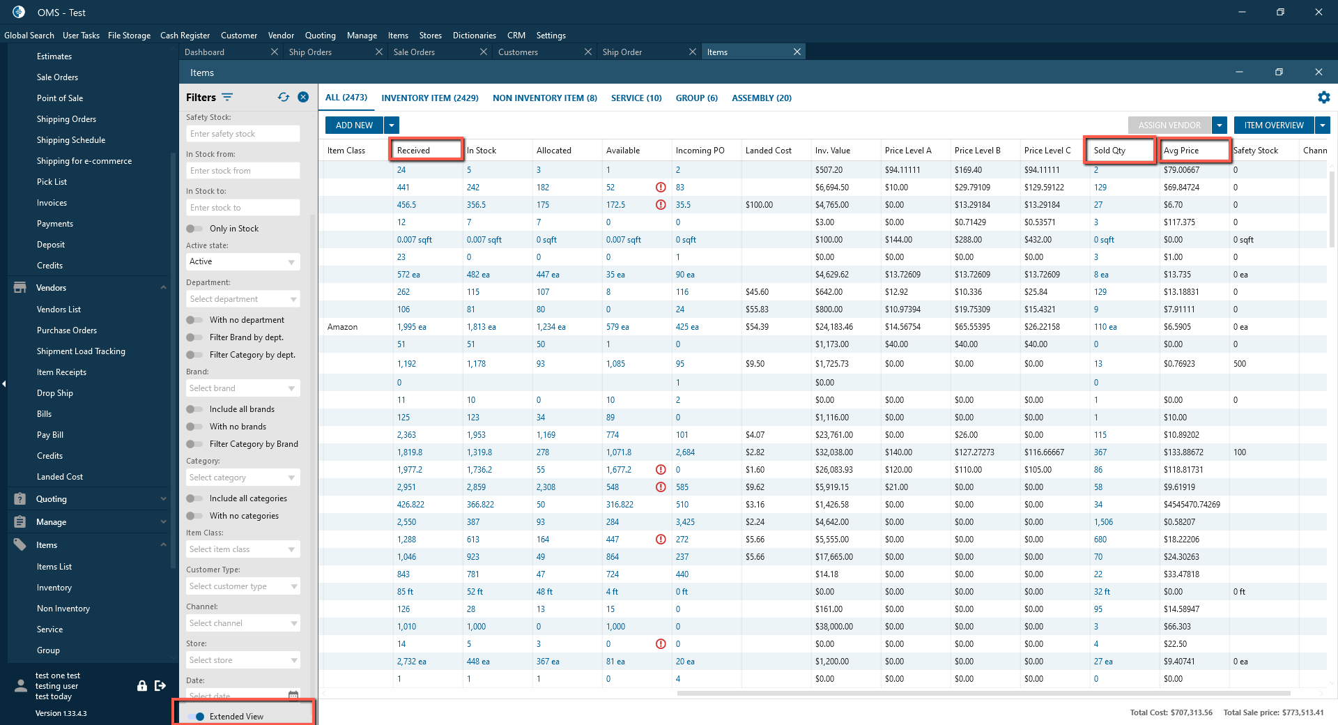 - Received = sum (Qty in IR in statuses Received). Qty is displayed according to the entered date. If date range is empty -> is calculated for the all time;
