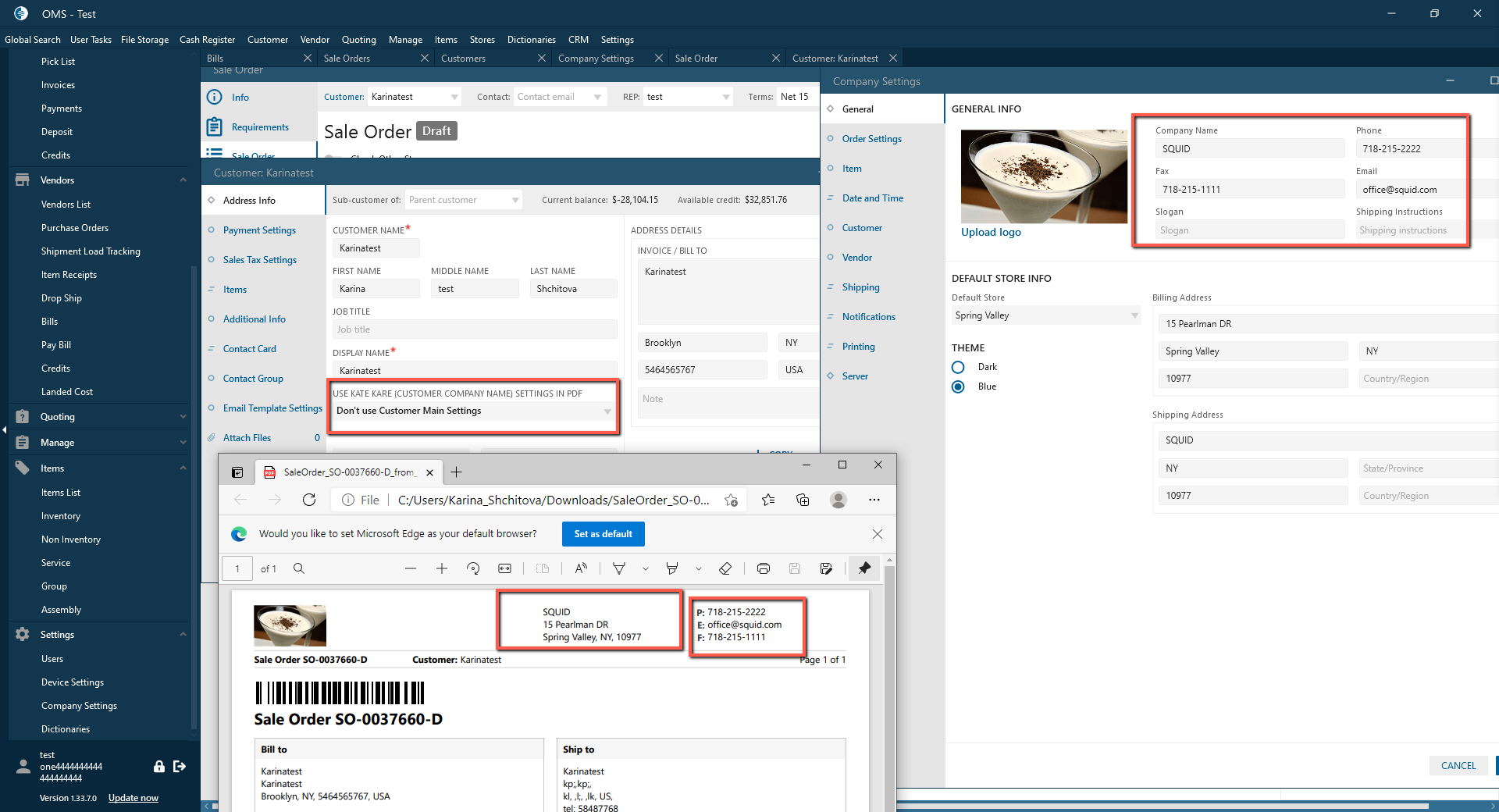 - Don’t use Customer main settings -> all settings in PDF header are taken from the Company Settings -> General tab.