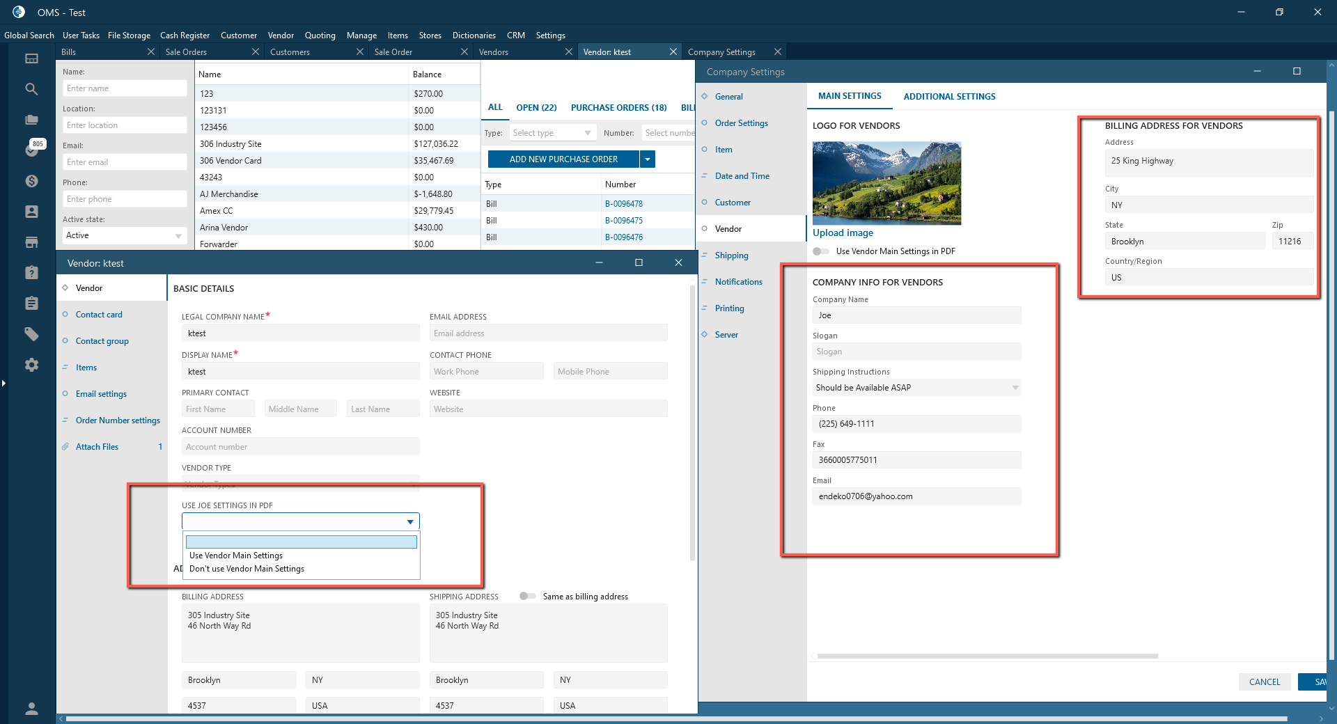 - Use [Vendor Company Name] settings in PDF – logic is the same as for customer.