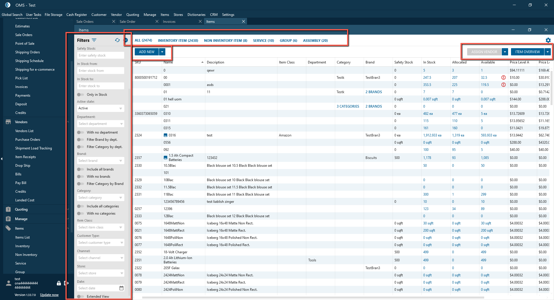 To Inventory/non inventory/service/group/assembly buckets were added counters.