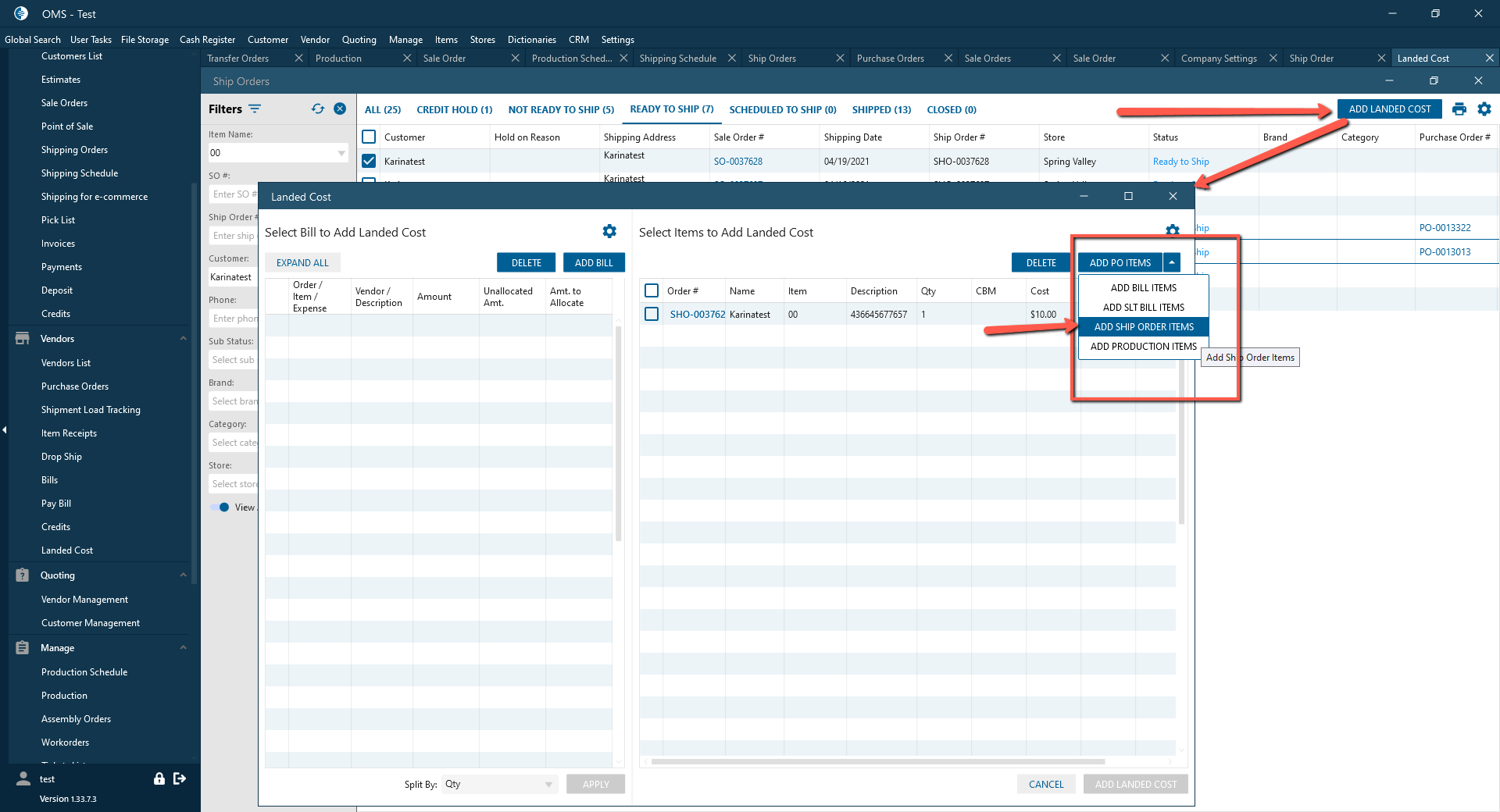 To Ship Orders/Shipping Schedule lists was added Add Landed Cost button.