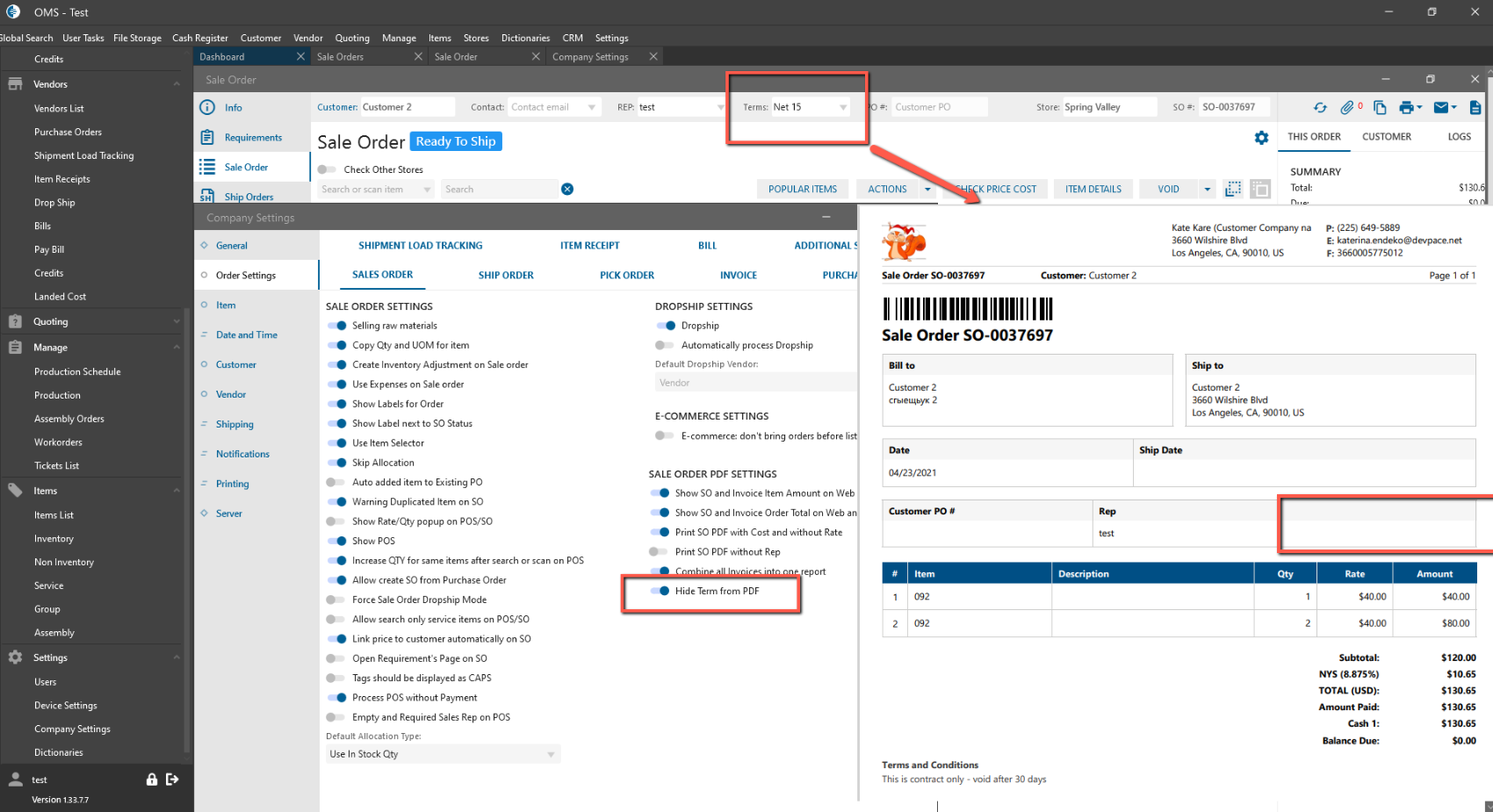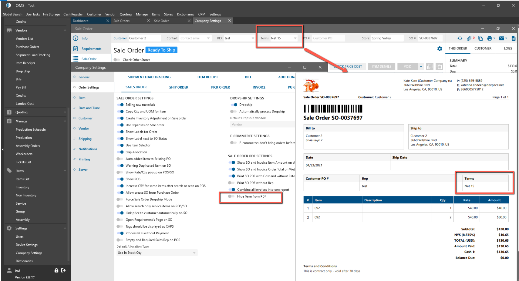 To Company Settings to Invoice/SO was added setting to remove terms from pdf.