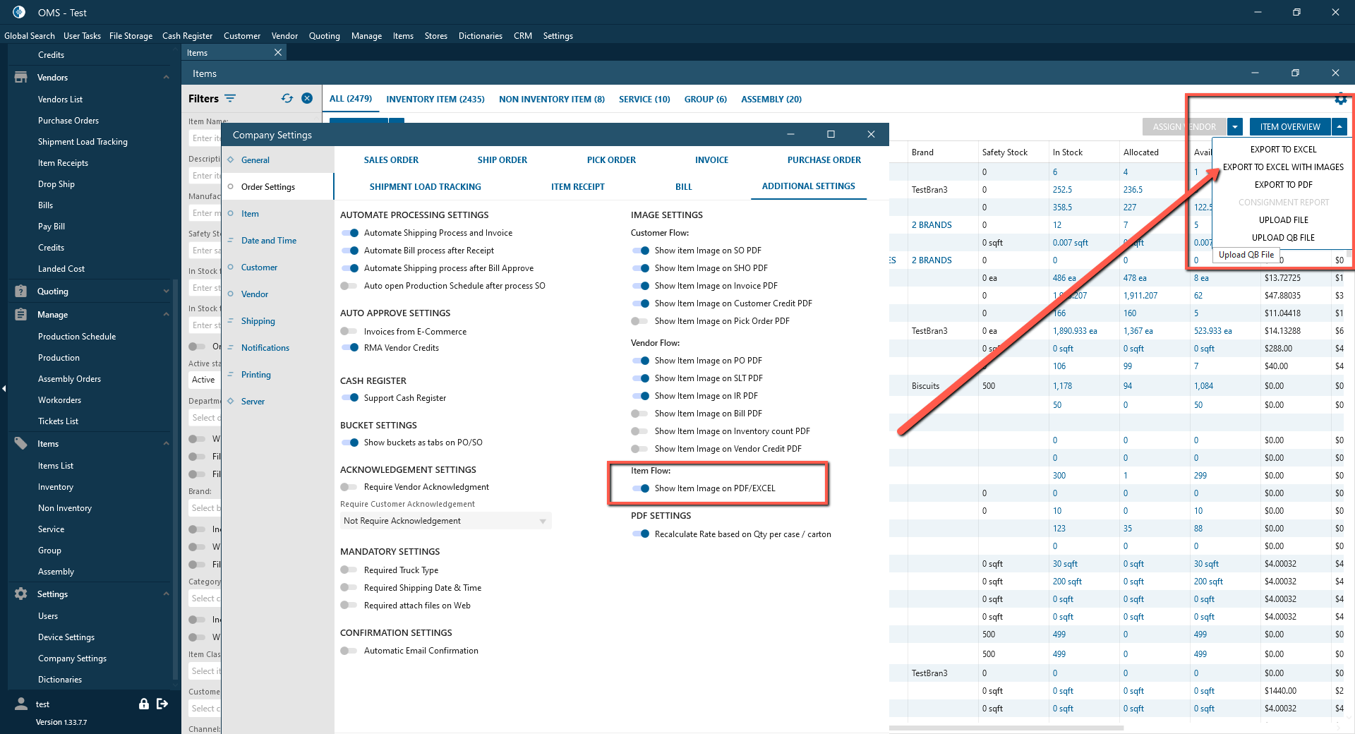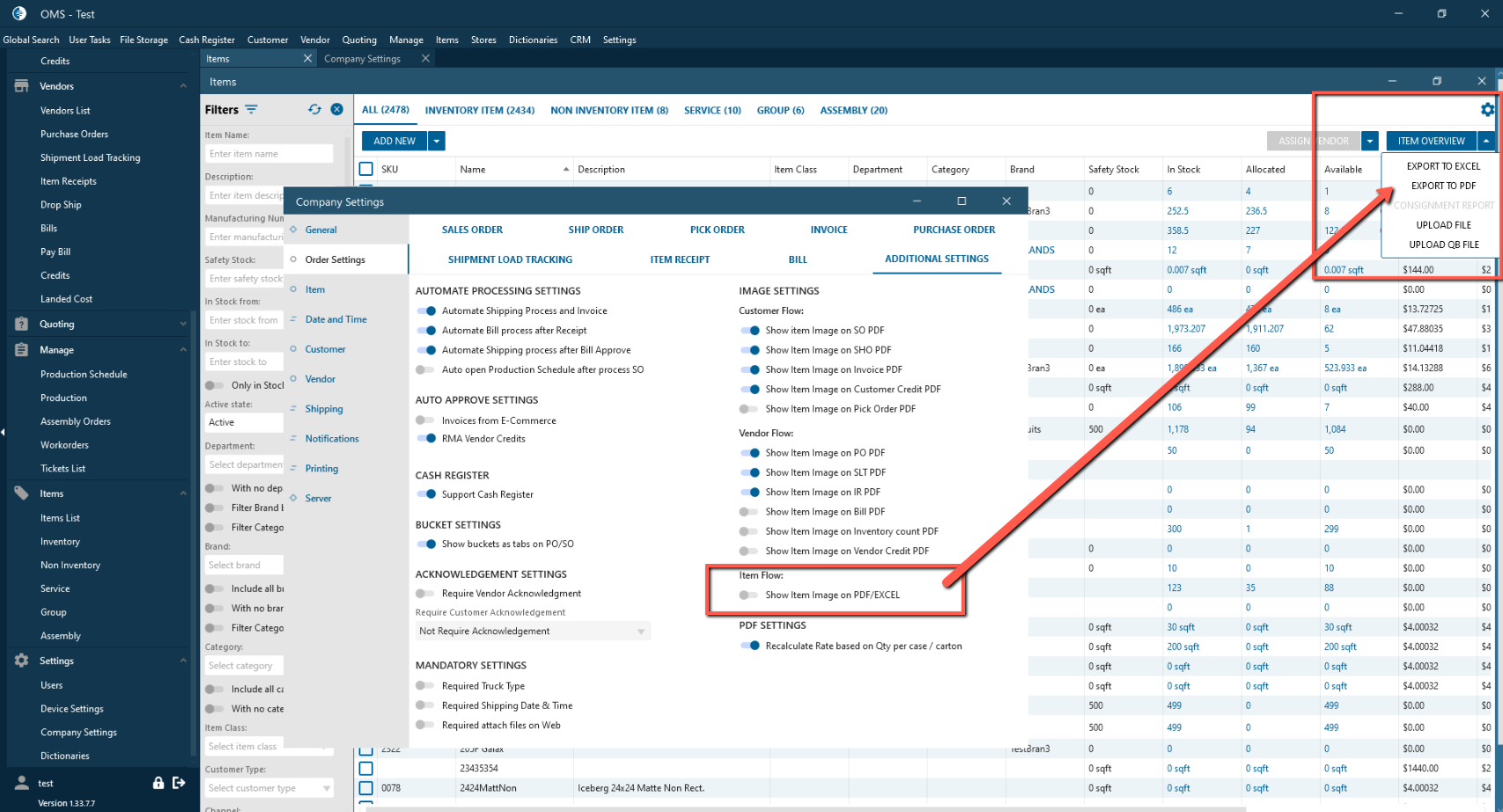 If checkbox “Show Item Image on PDF/Excel” isn’t checked in Company settings -> Export to Excel with Images button is hidden.