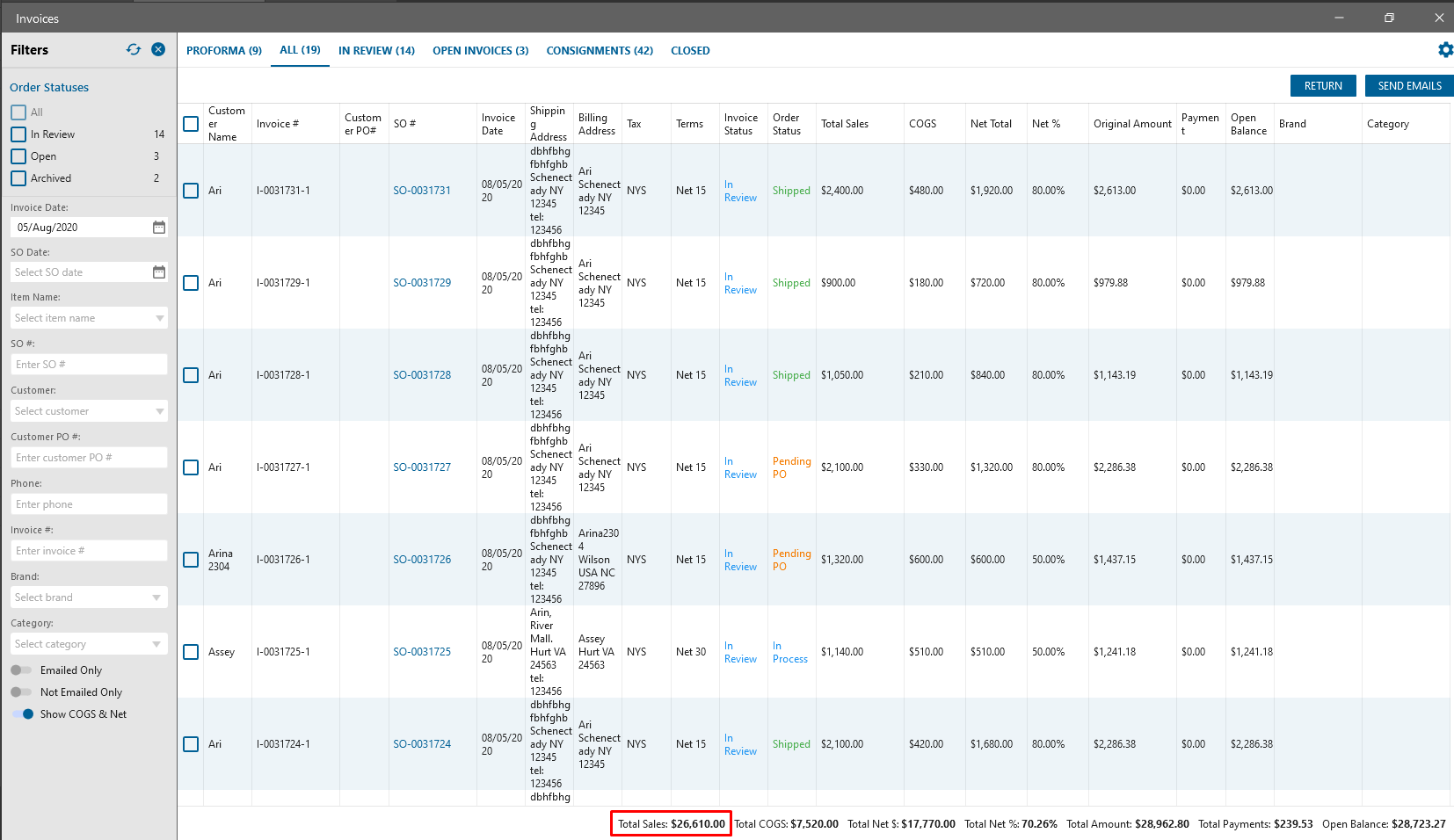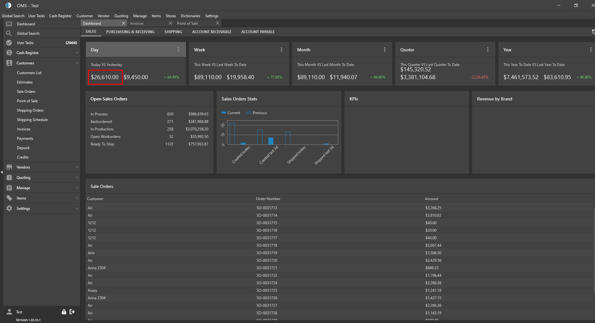 Expected Result: Calculated SO amount should be displayed without tax on the Dashboard and be corresponded to Invoices Amount for the current day