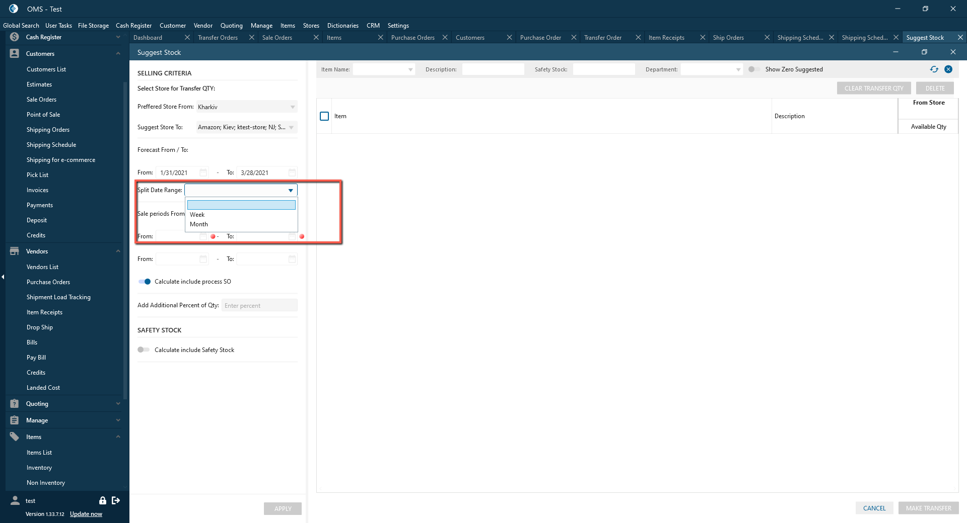 On Suggest Stock tab was added Split Date Range dropdown, which contains: