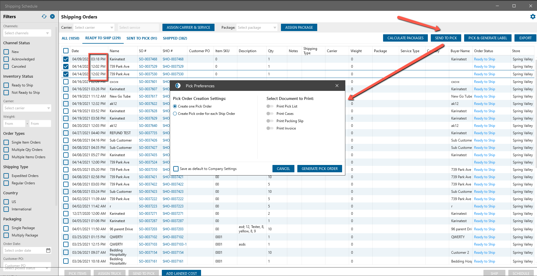 Send to Pick functionality was added to the form. After clicking on the button -> the Send to Pick pop-up will be opened to pick and print checked Orders