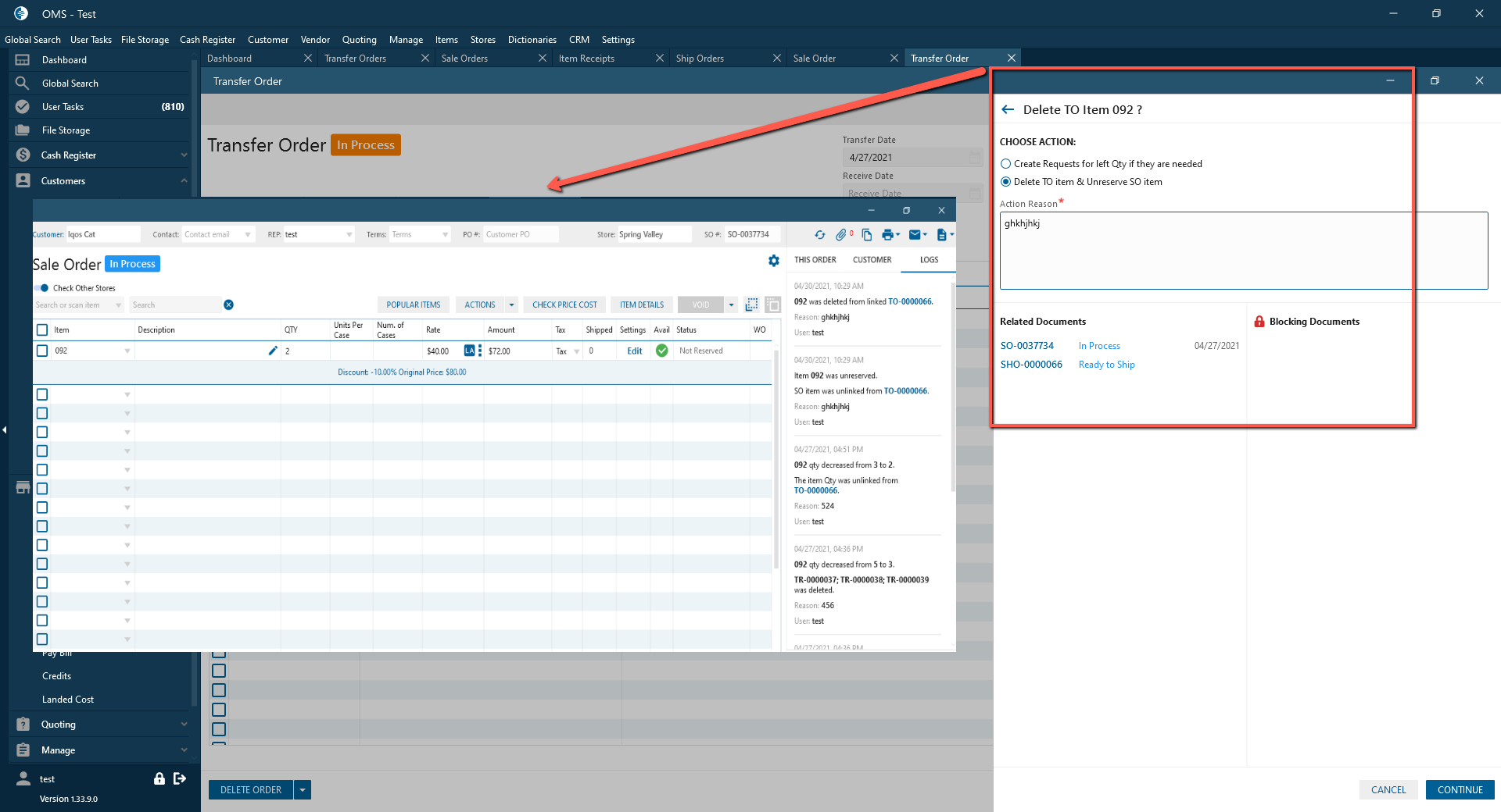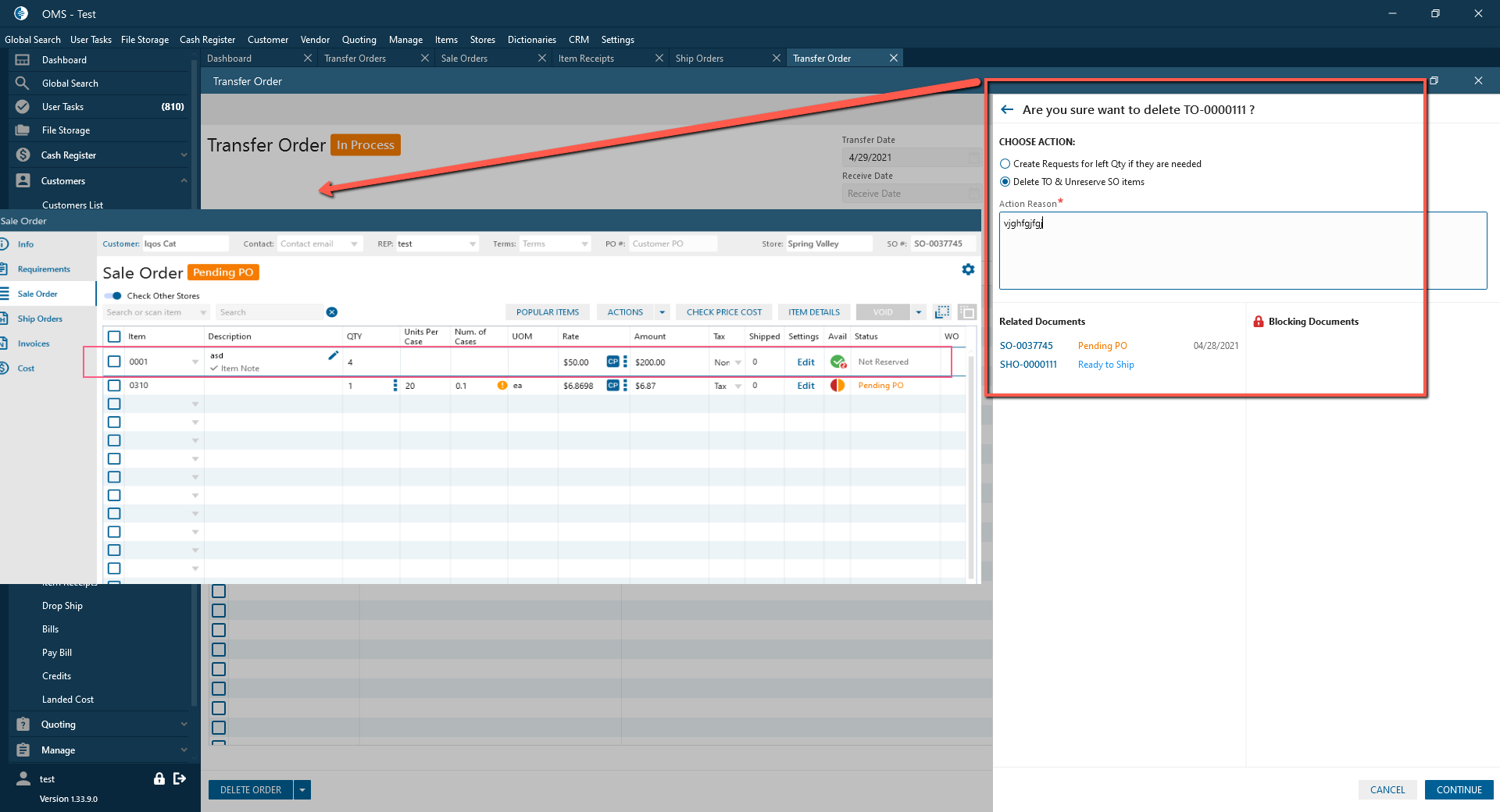 - Delete TO & Unreserve SO item: