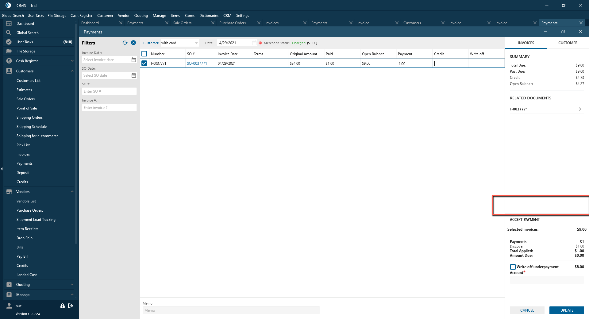 - if payment was selected -> the amount can’t be more than the Payment amount;