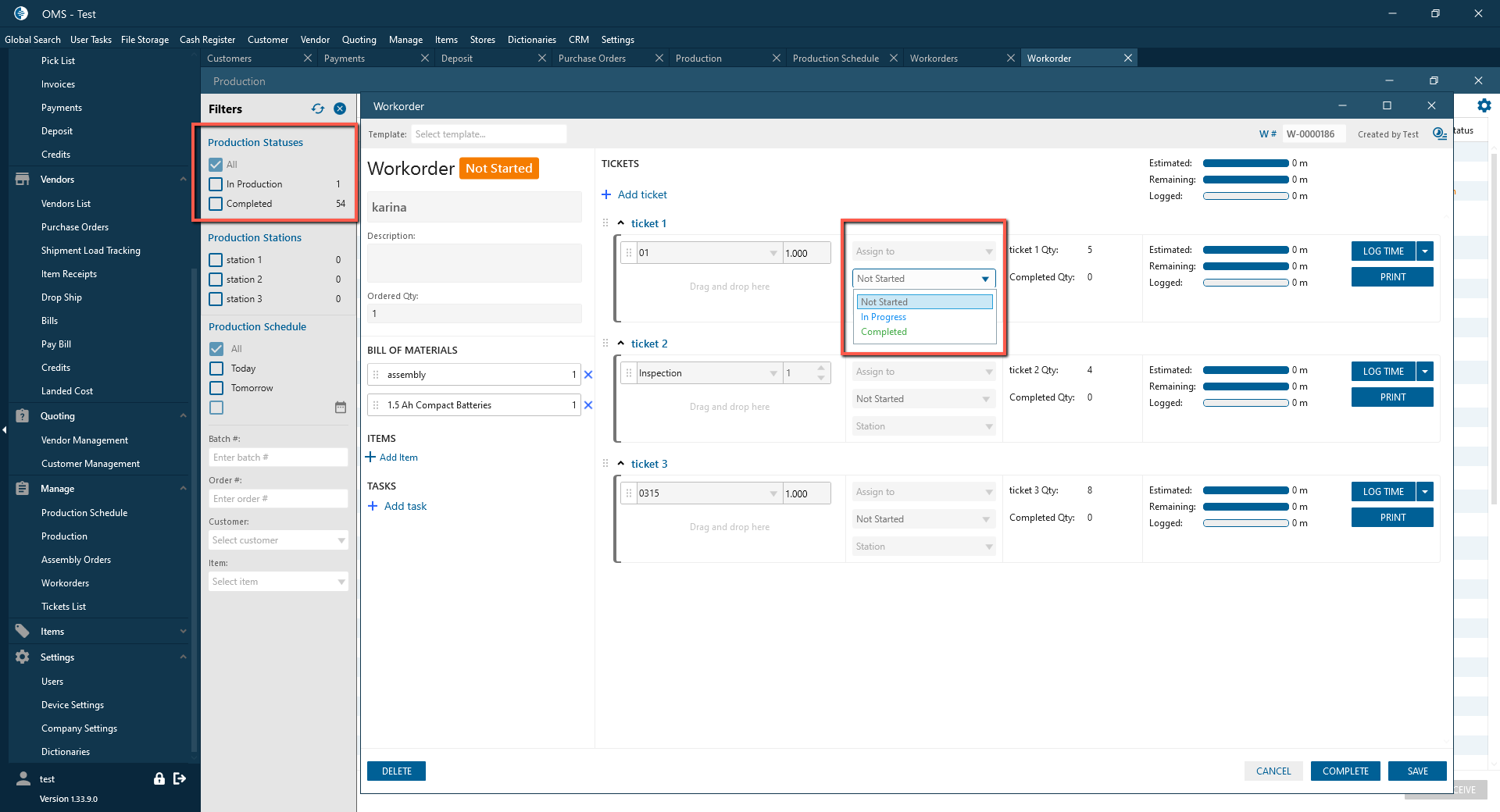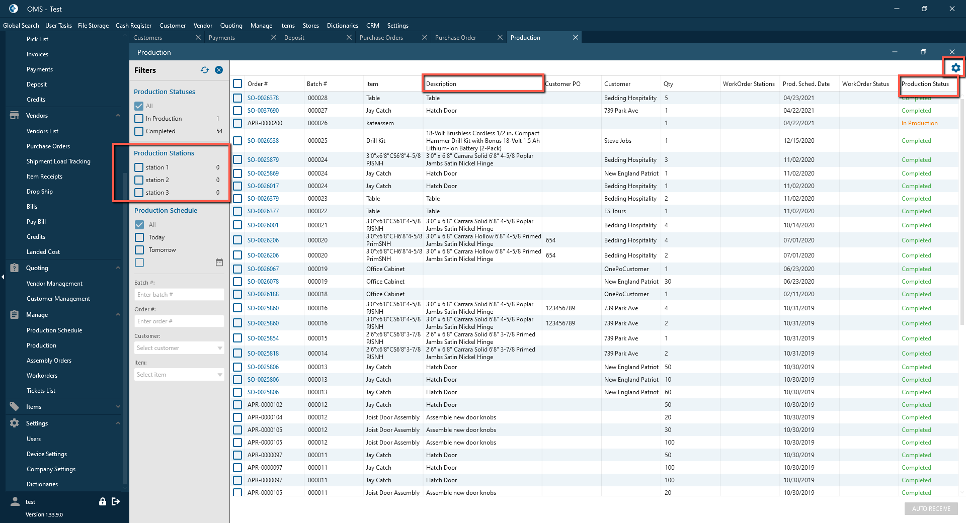 Also, was added Production stations filter with Qty of WorkOrders for each station.