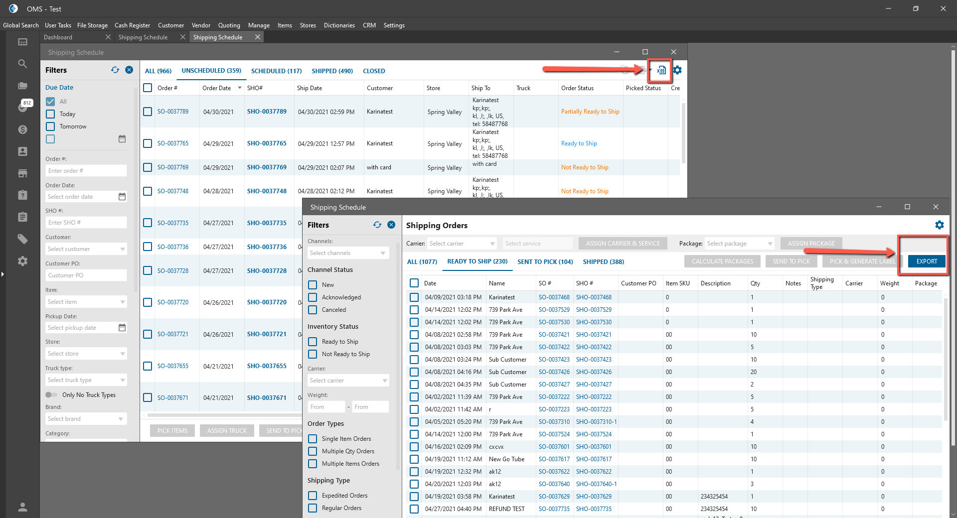 On the Shipping Schedule\Shipping Schedule for Ecommerce tabs was added the ability to import Schedules to Excel.