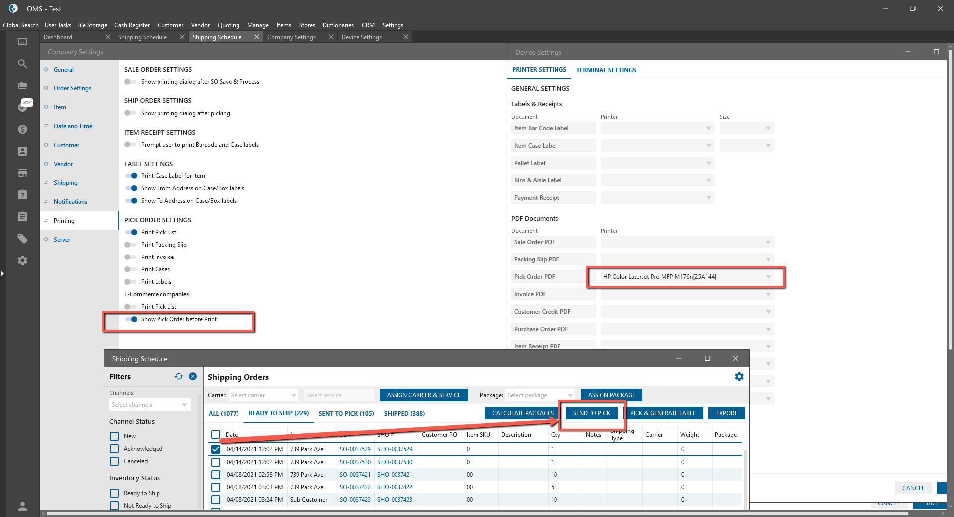 - If the printer has been selected -> the checked documents are printed and only after the print is displayed generated Pick order or Pick order list forms.
