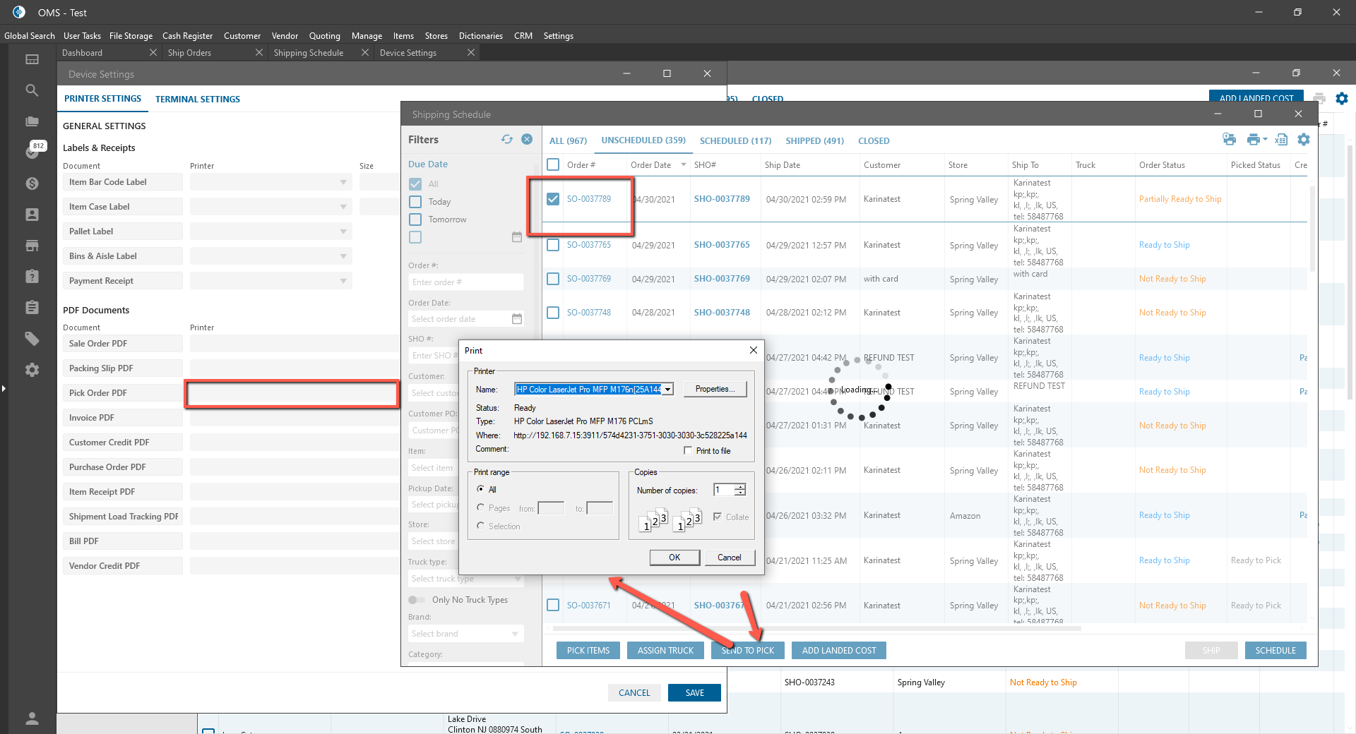 - Open Shipping scheduled/On Shipping scheduled for e-commerce -> Check order;