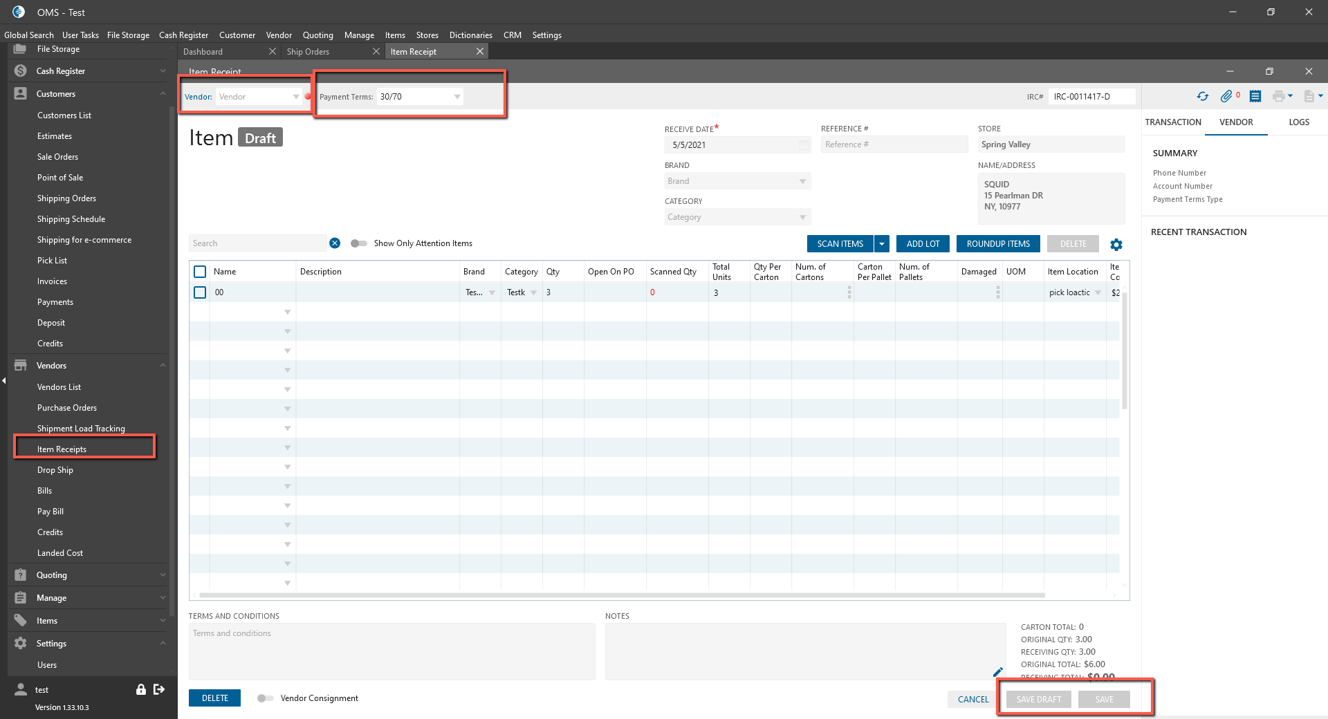 IRC can’t be able to save without a Vendor and Payment terms aren’t hidden.