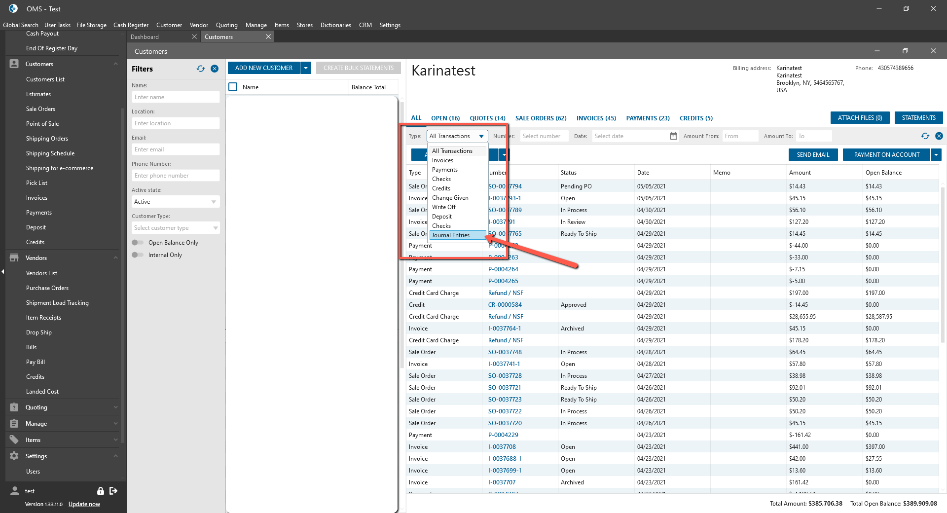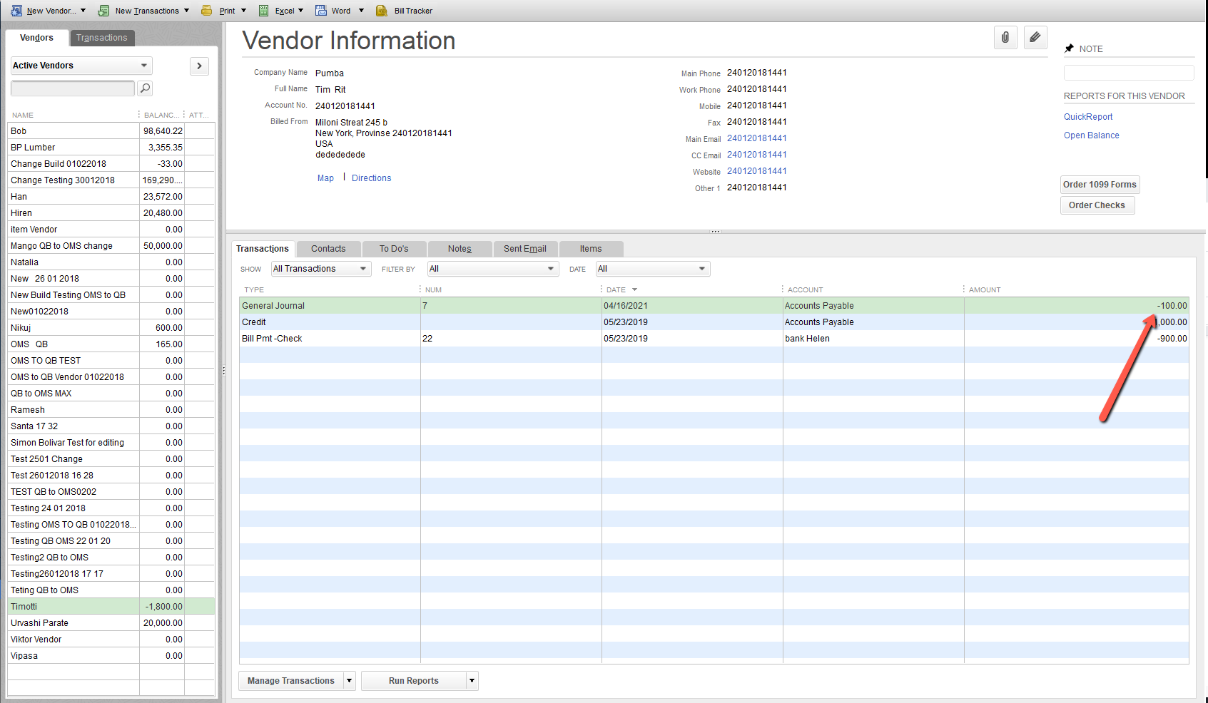 - comes to OMS Vendor Transactions as Negative (like a Bill);